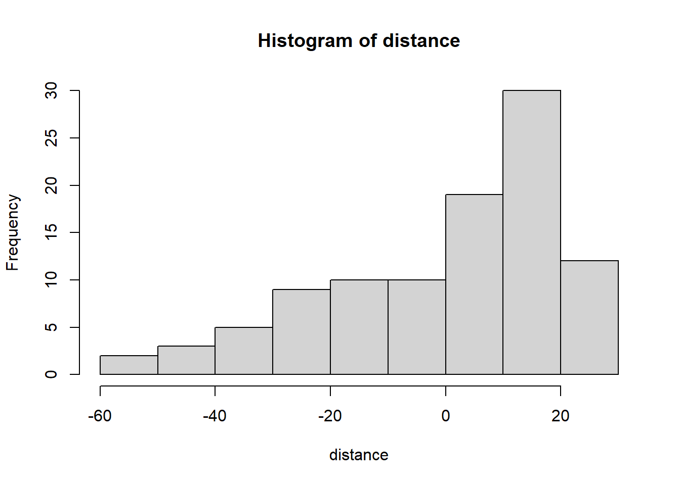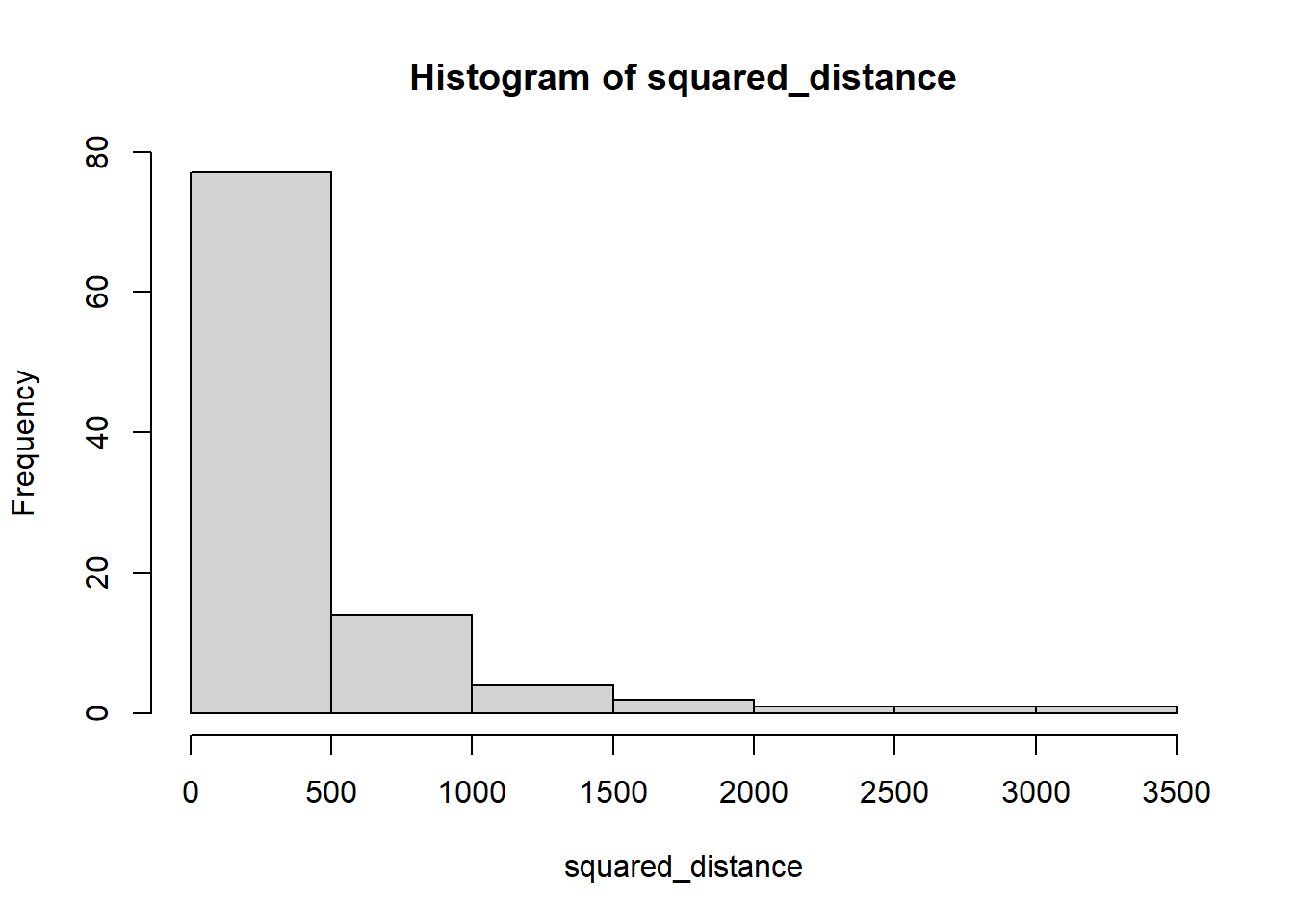 The above figure shows you a histogram of the distances of each datum from the mean.