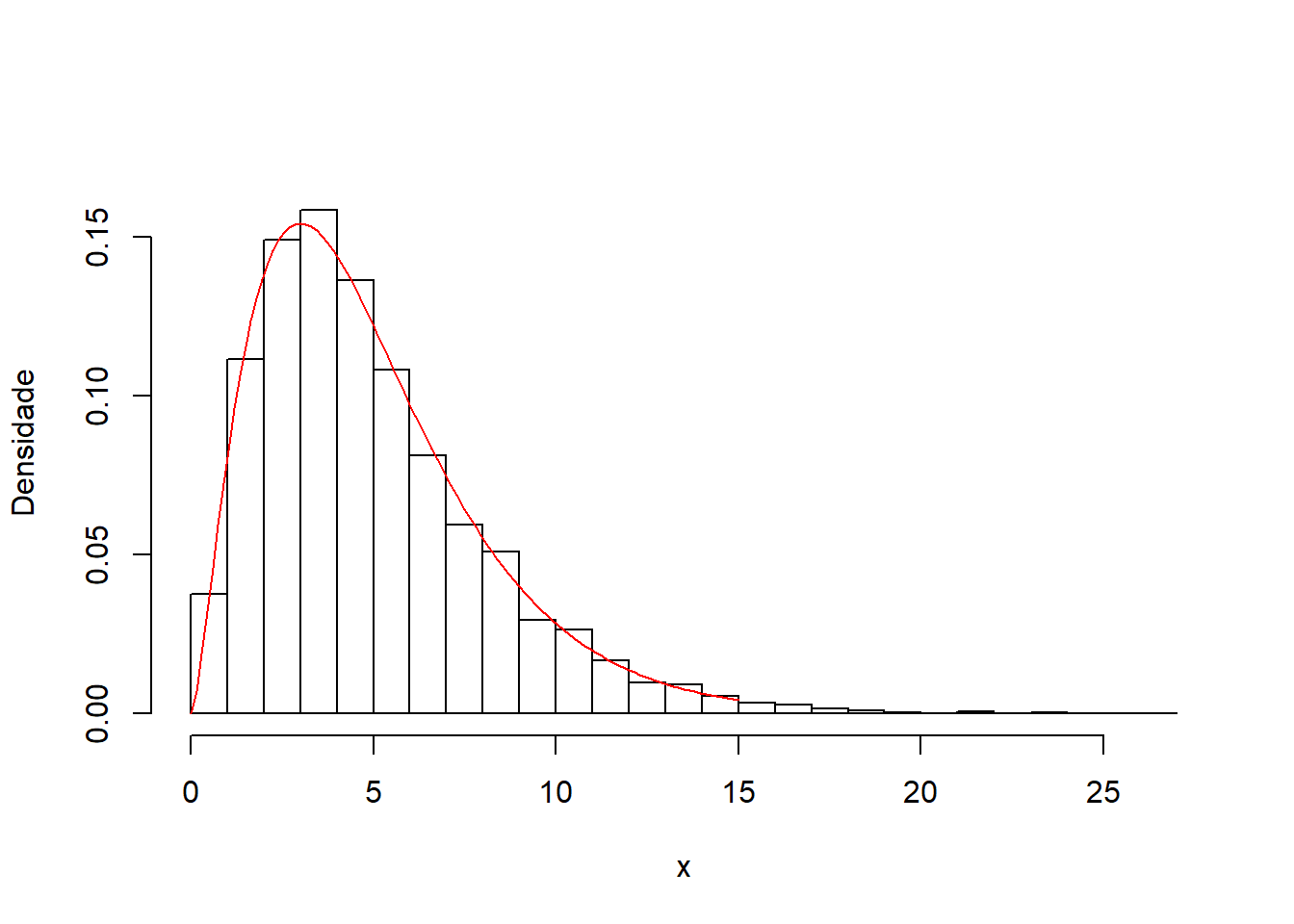 hist(x, prob=T, breaks=20, main="", ylab="Densidade")