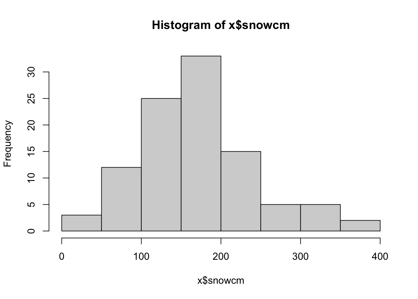 summary(x$snowcm)## Min. 1st Qu. Median Mean 3rd Qu. Max.