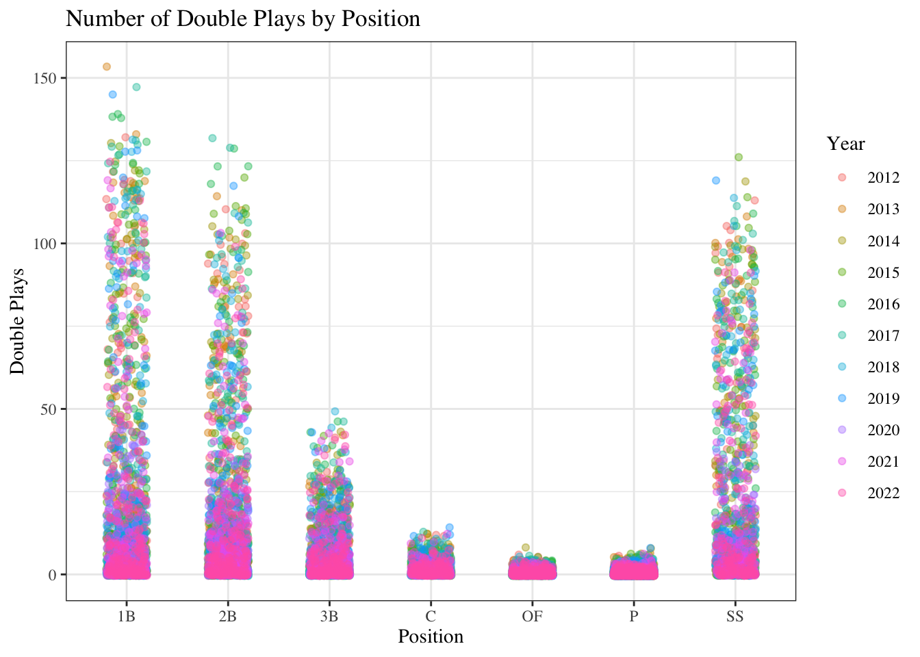 Looking Ahead: Many of these tables contain minimal variables that are specific to one part of baseball (such as pitching or fielding). It would be helpful if we could join multiple tables together. We will talk more about creating plots in the Visualizations section.