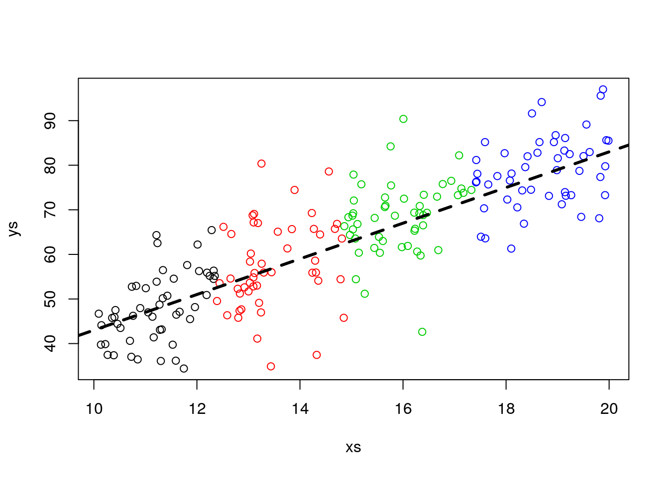 In this chapter we look again at the ANCOVA model presented in chapter 10, but under a different perspective. I decided to create this material as a bonus for students, to understand why the ANCOVA is what it is. As a bonus, this also provides a cautionary tale about the dangers of non-random sampling, or more generally, confounding due to unmeasured factors that might affect our response variable.