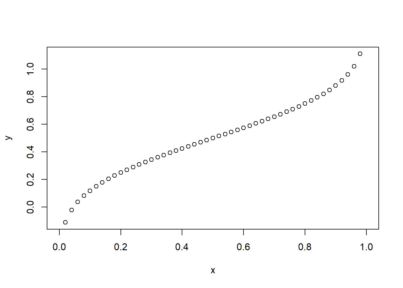 Assim, obtemos uma linha de tendência que aparenta ajustar-se corretamente aos dados. Embora apenas se possa testar a gaussianidade dos dados com recurso a testes de normalidade aplicados sobre os resíduos, segundo a representação acima, não existem fortes razões para suspeitar de que a distribuição dos dados não seja Gaussiana.