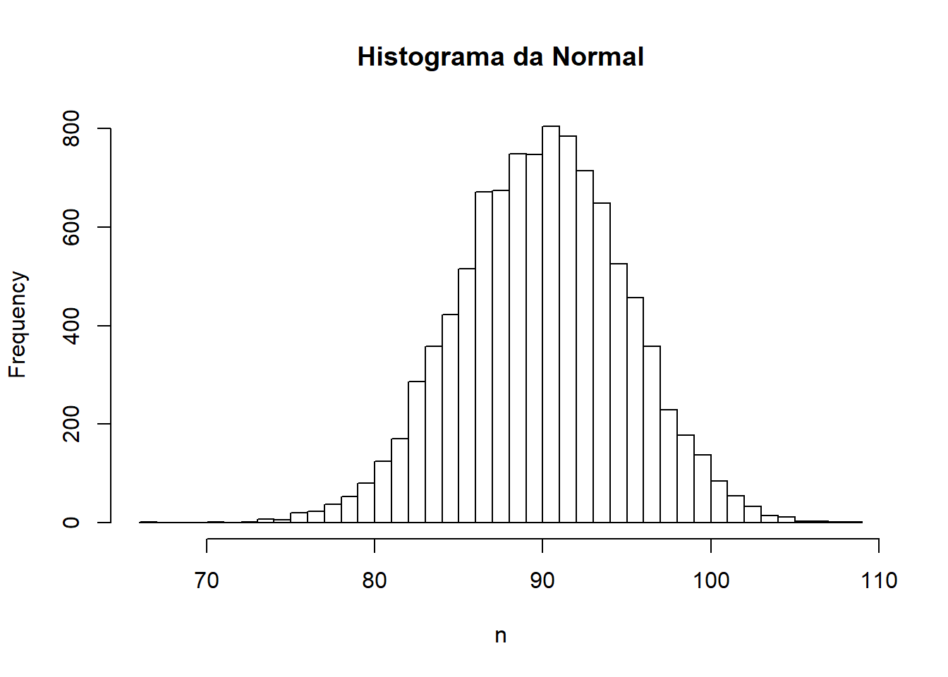 rnorm(n, mean, sd)→ usada para gerar um vetor de comprimento n de números aleatórios normalmente distribuídos
