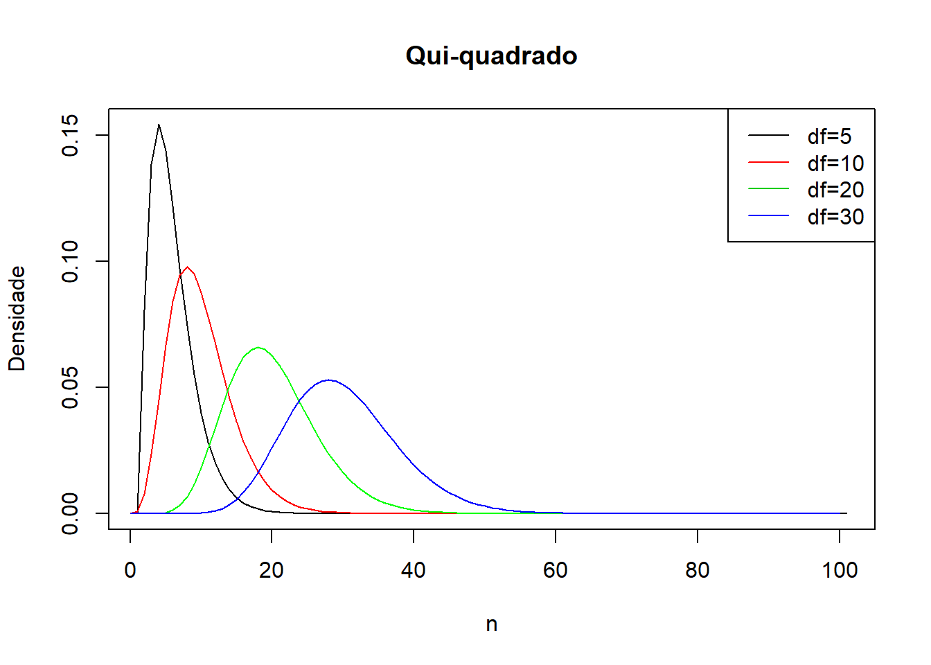 → No R não existe valor de default para os graus de liberdade. dt origina a função de densidade da distrbuição, pt dá a função de distribuição cumulativa, qt dá a função dos quantis e rt gera números aleatórios desta distribuição.