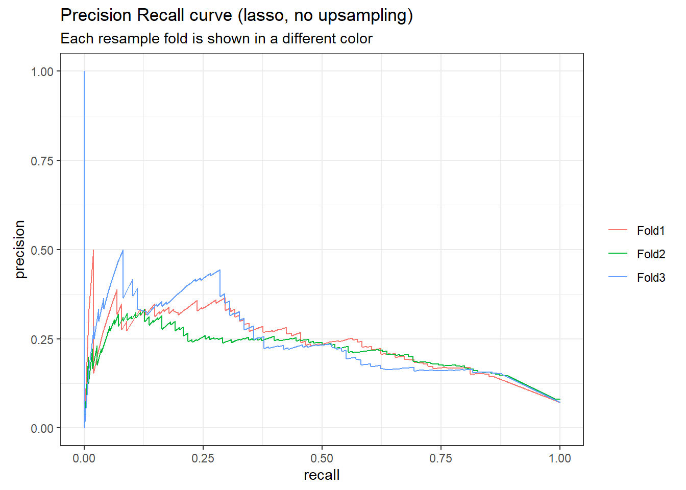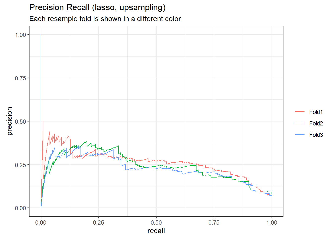 title = "Precision Recall (lasso, upsampling)",