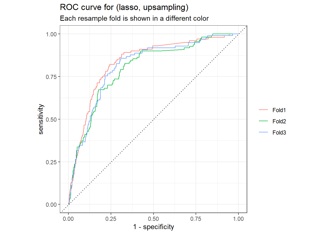 title = "ROC curve for (lasso, upsampling)",