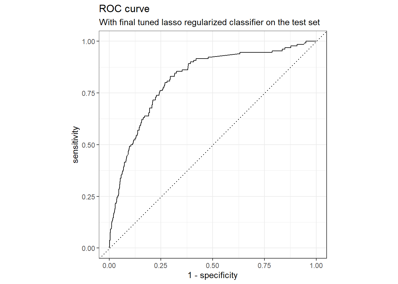 subtitle = "With final tuned lasso regularized classifier on the test set"