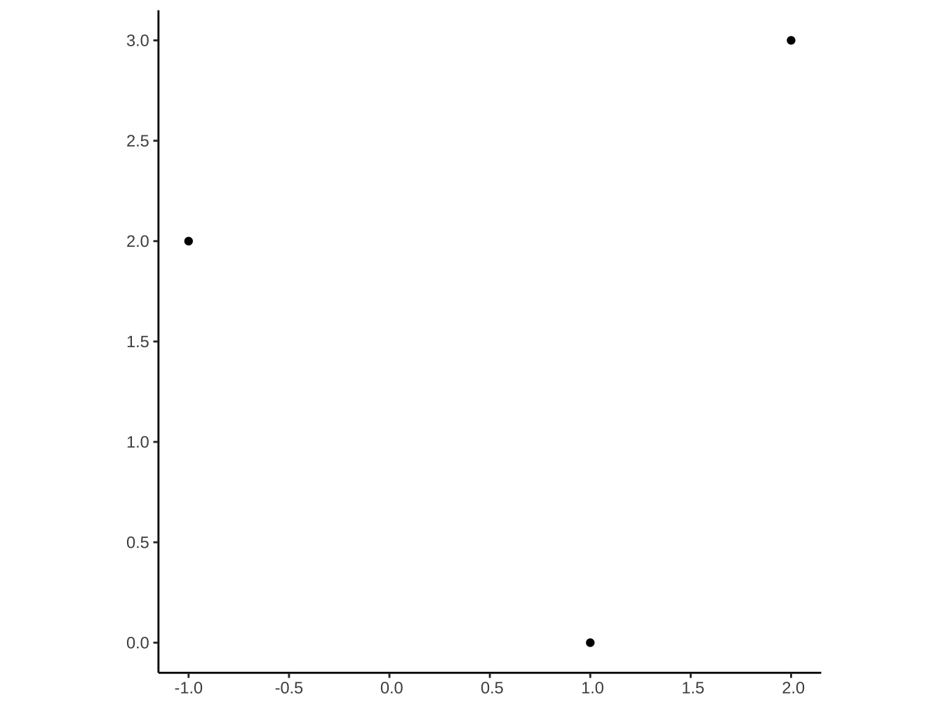用rbind()產生\(4\times 2\)矩陣,代表在xy平面的三個點: