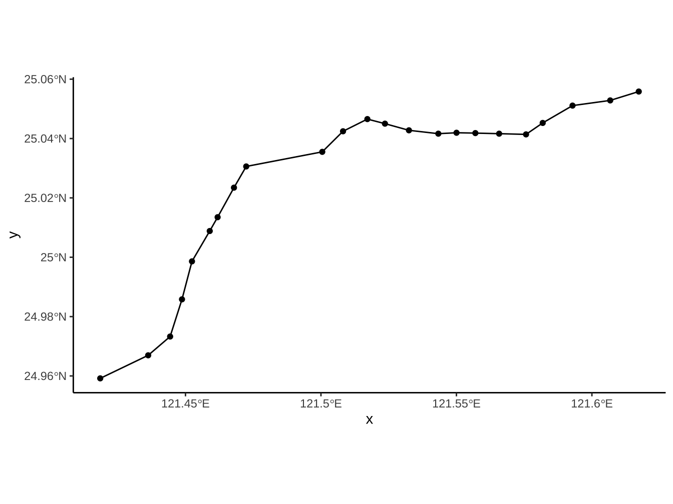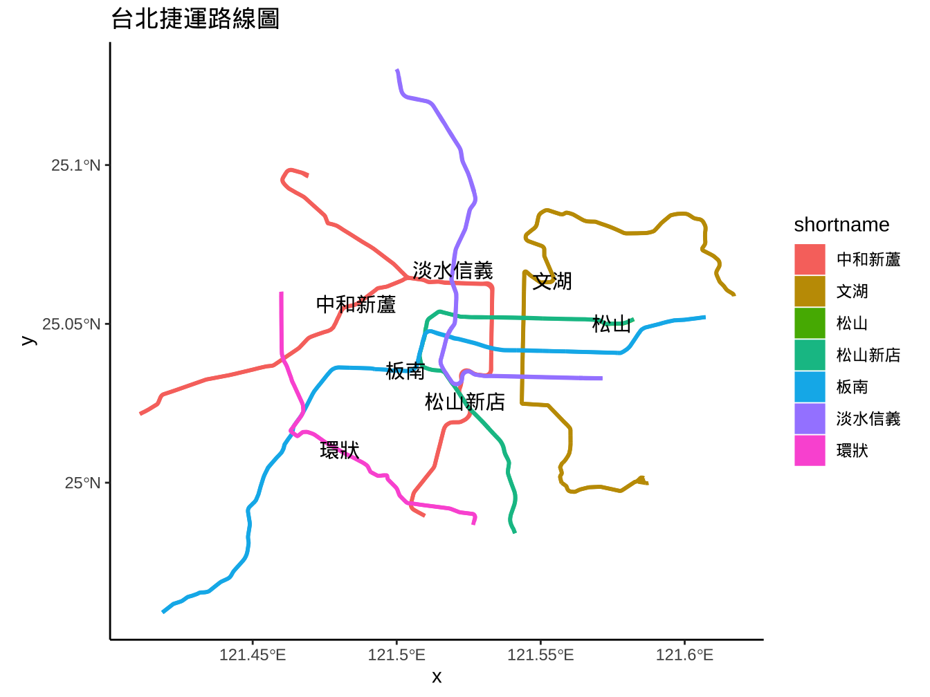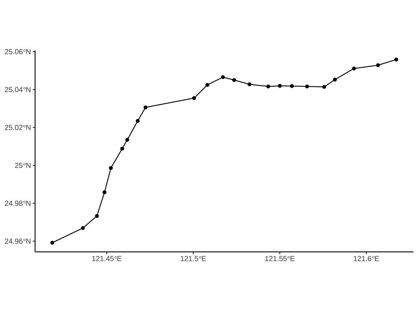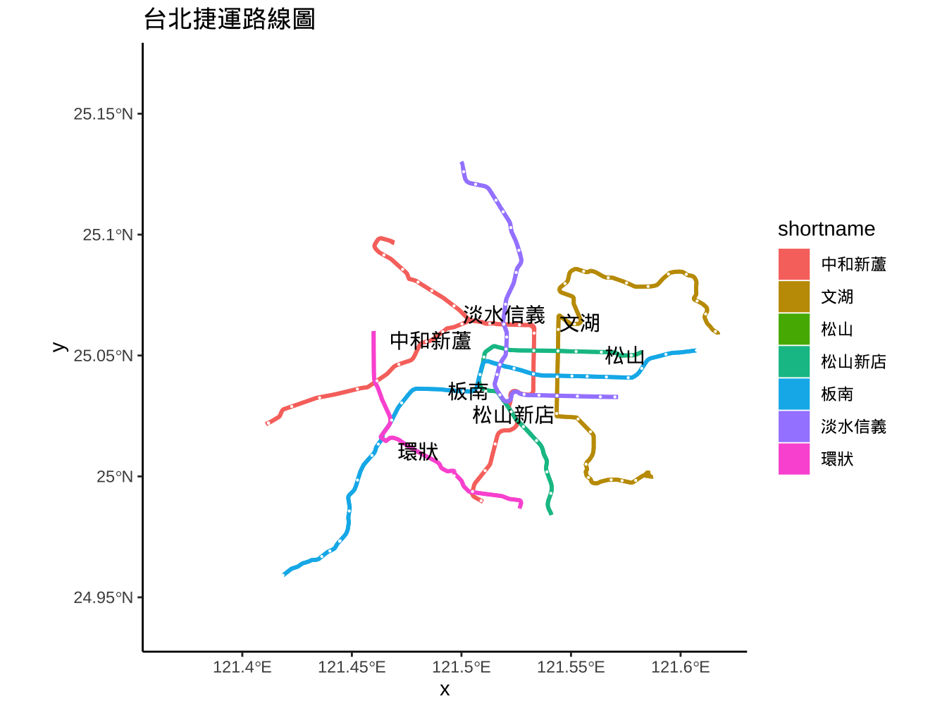 ) -> sf_tpe_mrt範例:將各個板南線片段連起來(使用st_union())
