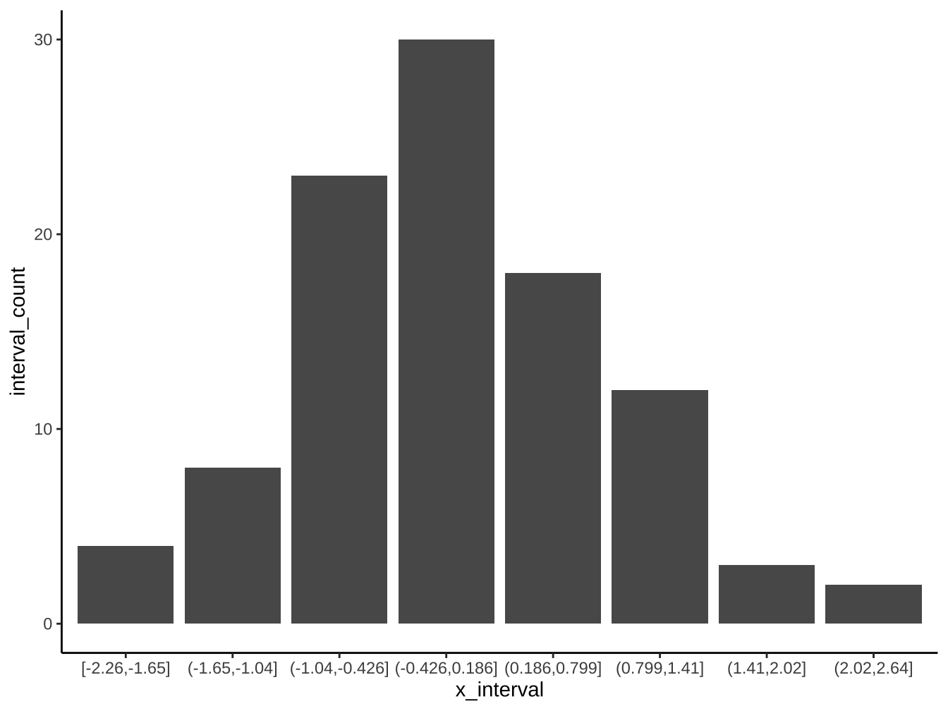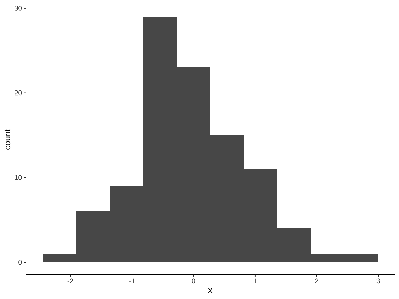 geom_bar():用來呈現不同x類別的樣本個數。- 樣本個數會自動計算,呈現在y軸。