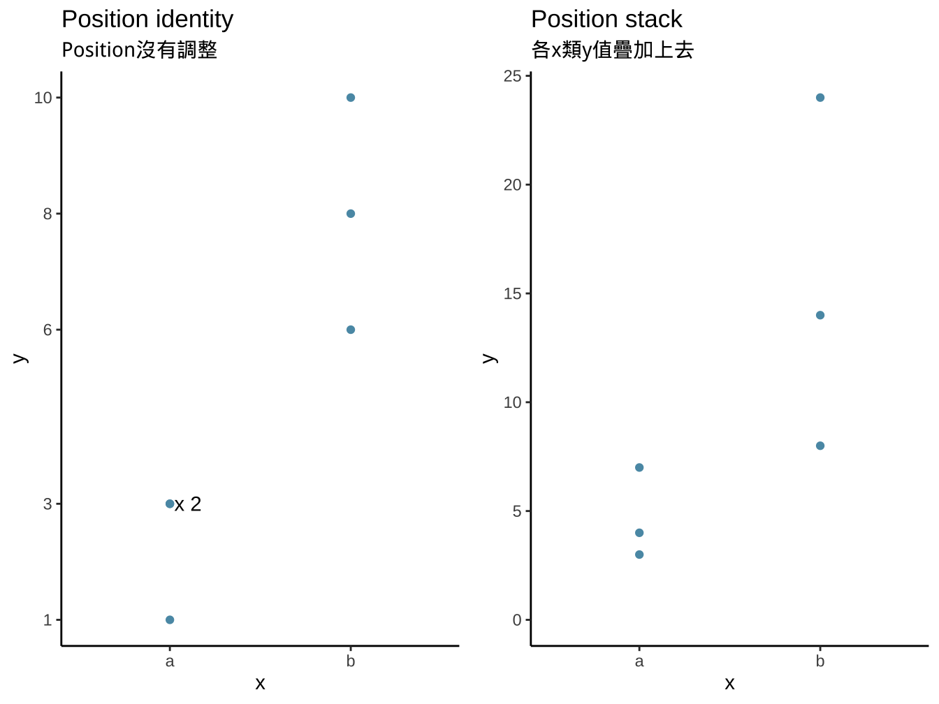在不改變vertical position下,調整horizontal position使geom不重疊。