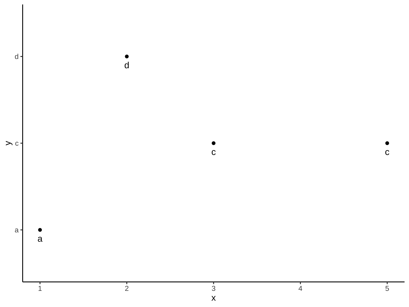 geom_text(aes(label = y), position = position_nudge(y = -0.1))