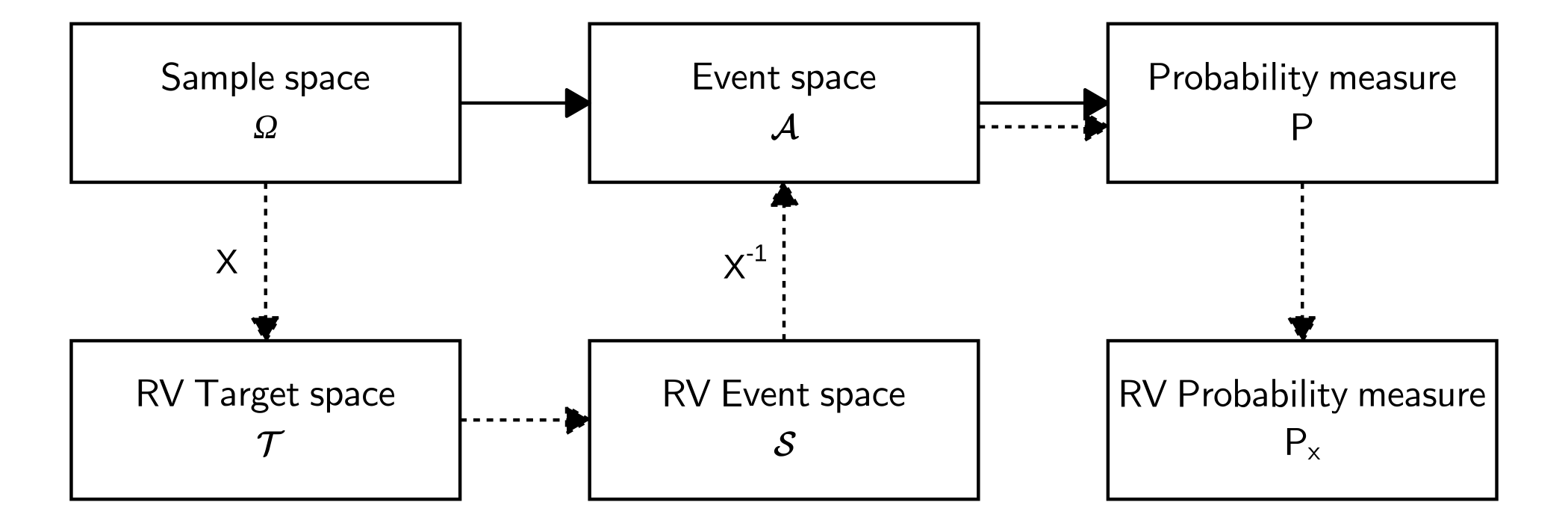 The event space \(\mathcal{A}\) is denoted as A_big here: