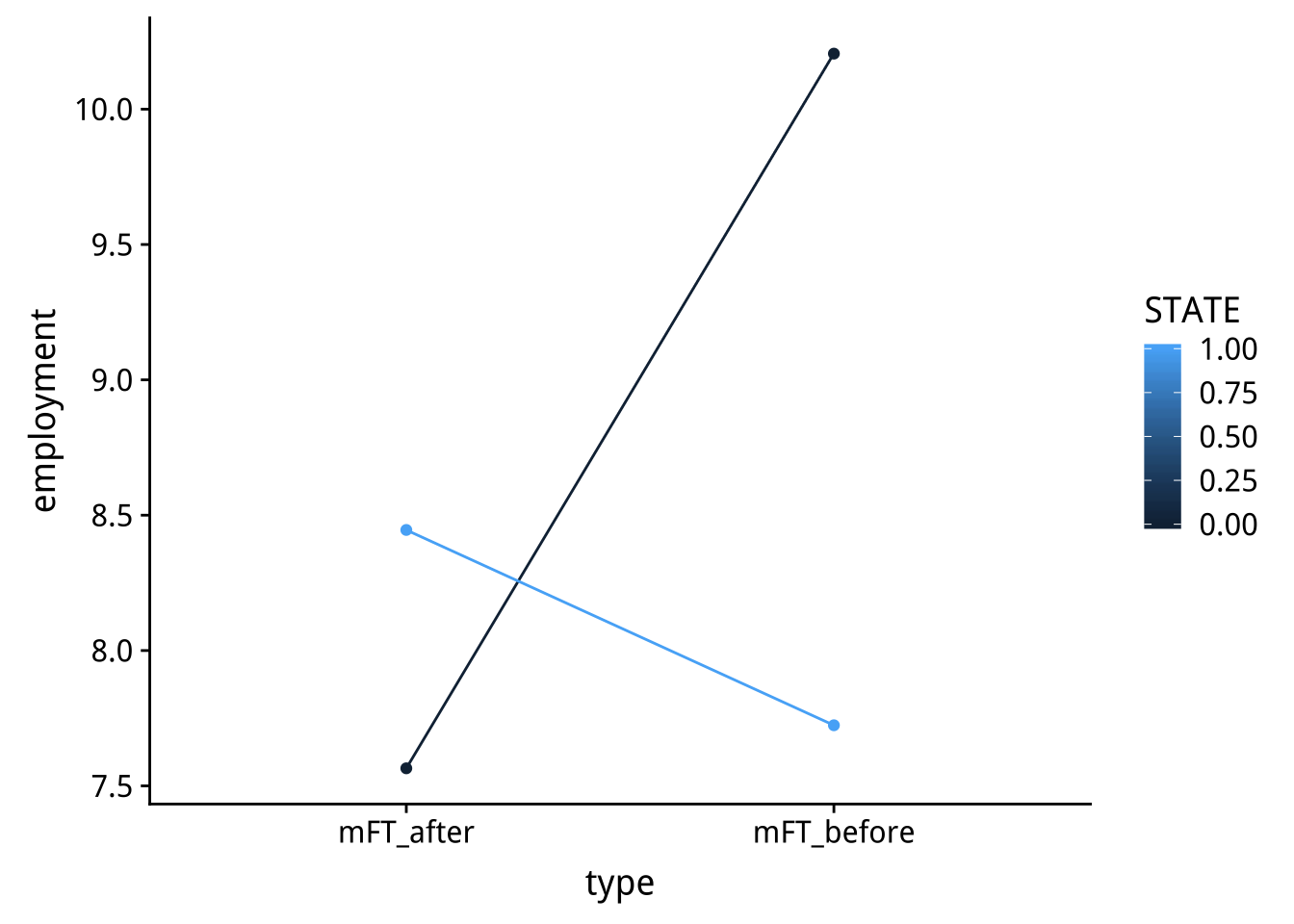 lm(emp~STATE1+AFTER+PolicyImpact,data=public2)->DD_result