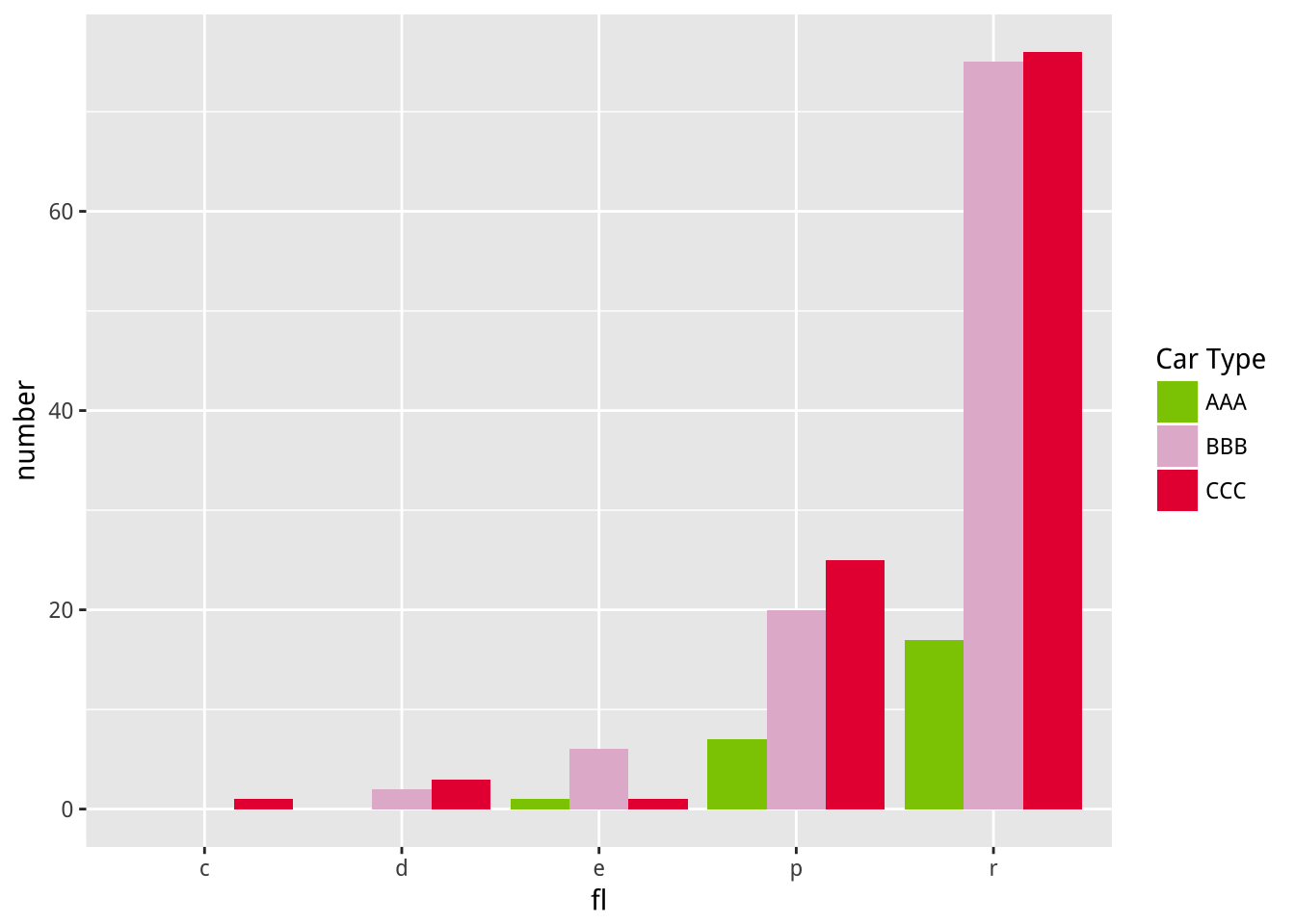 geom_bar(aes(x=fl,y=number,fill=drv),