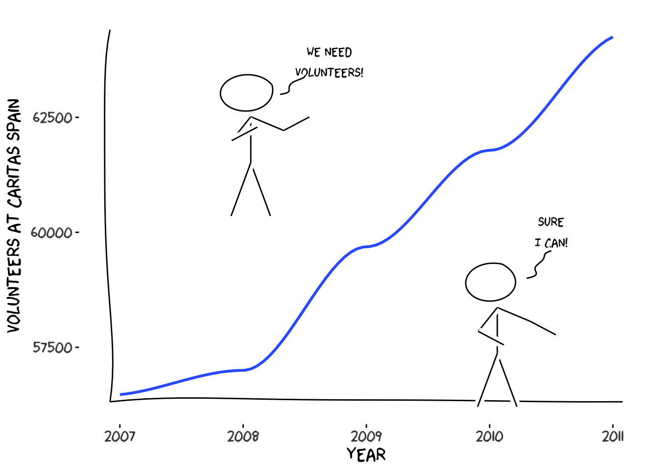label = "We Need\nVolunteers!", family="xkcd" ) +