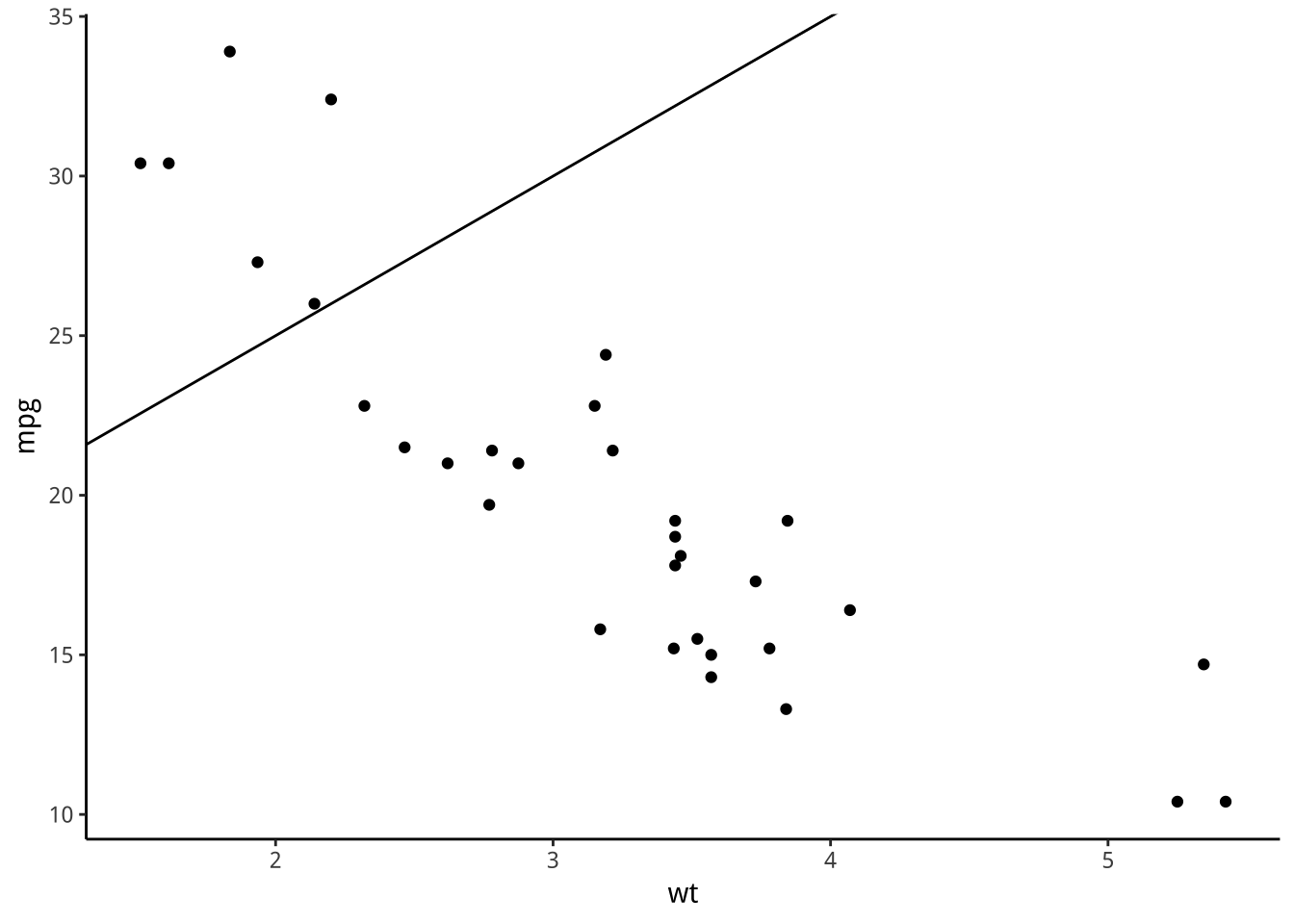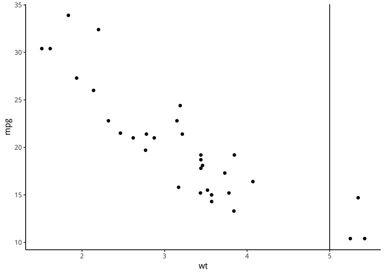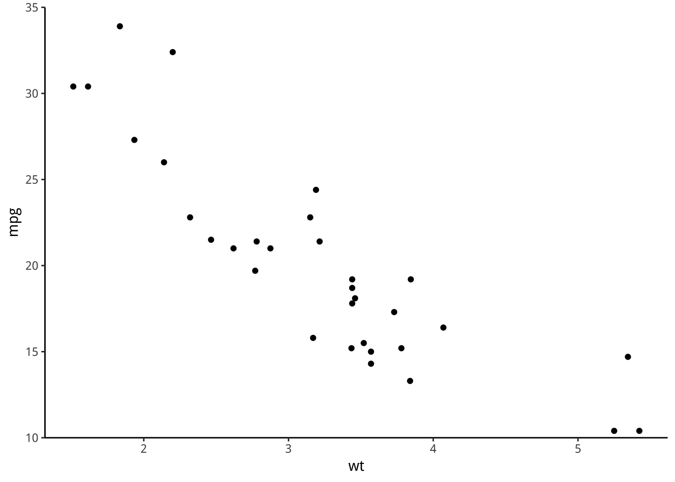 p <- ggplot(mtcars, aes(wt, mpg)) + geom_point()