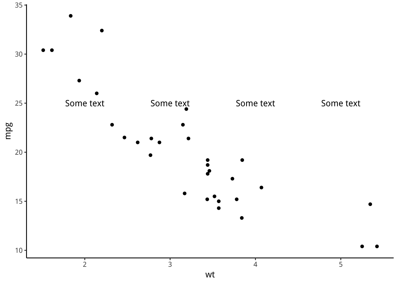 p + annotate("text", x = 2:5, y = 25, label = "Some text")