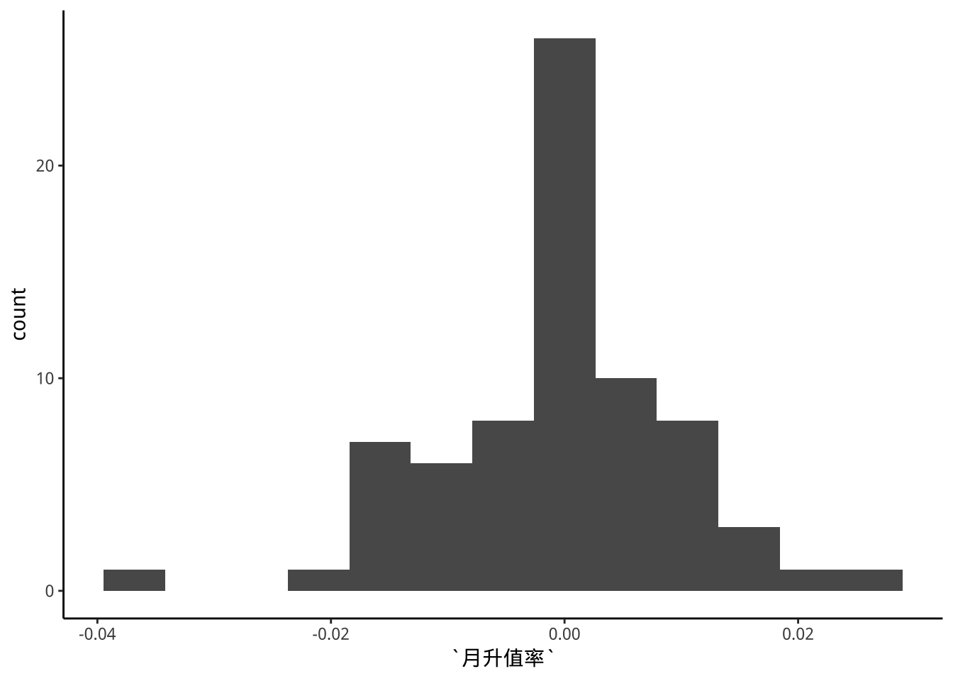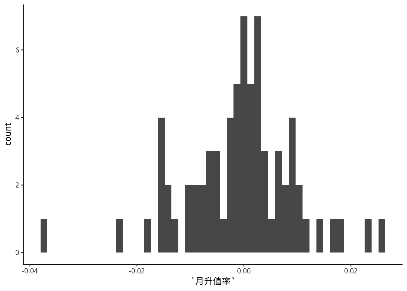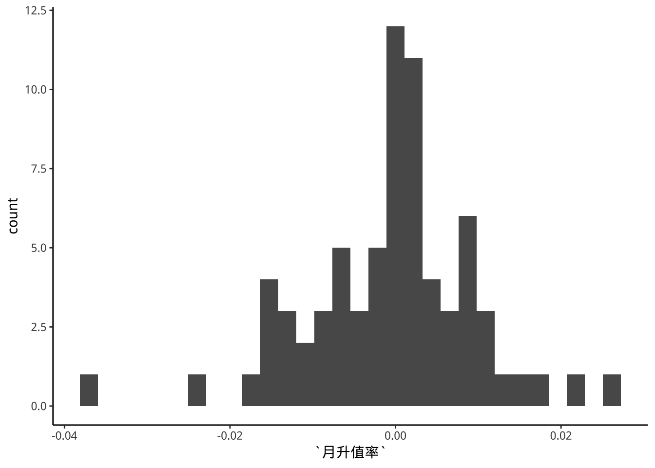 binsNumber<- grDevices::nclass.FD(exDataTWpost90s$月升值率)
