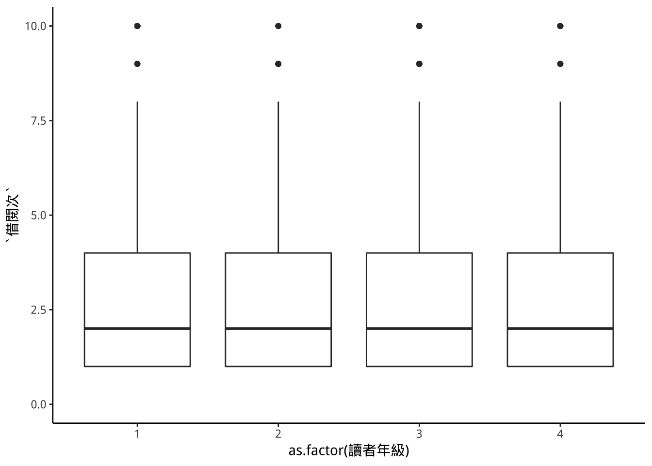 geom_boxplot(aes(y=借閱次))->p9; p9