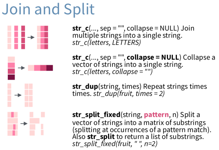 str_split(): 分割一個字串向量(後面章節再詳述)