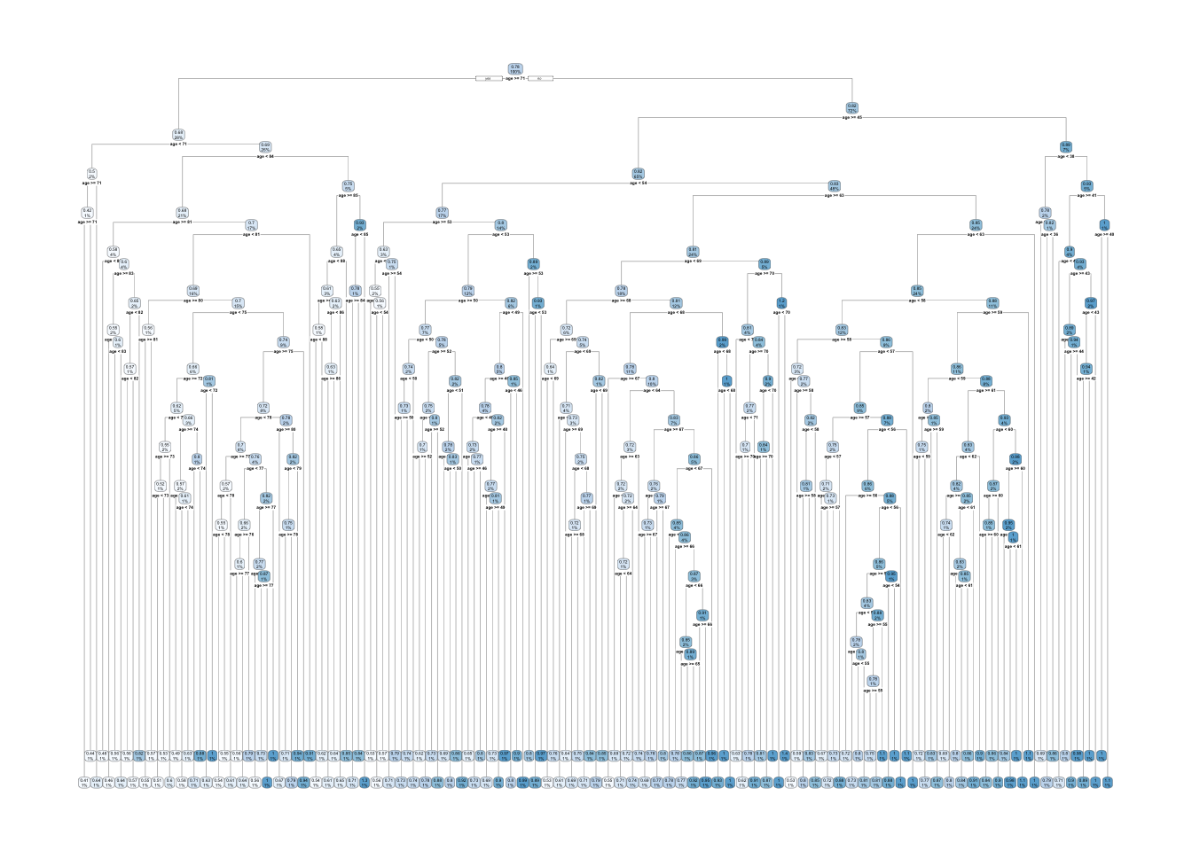 Using the bmd.csv, fit a tree to predict bone mineral density (BMD) based on AGE
