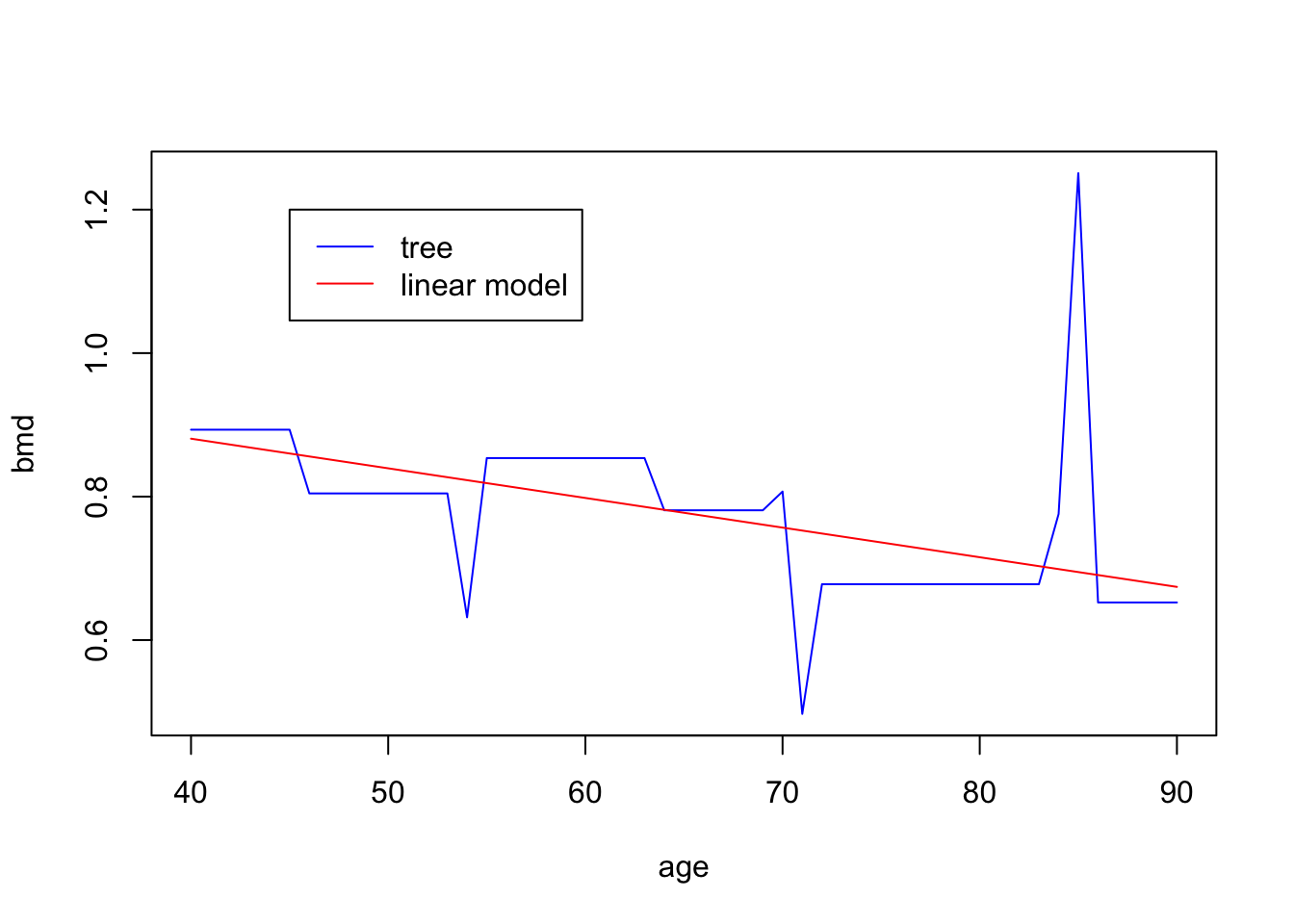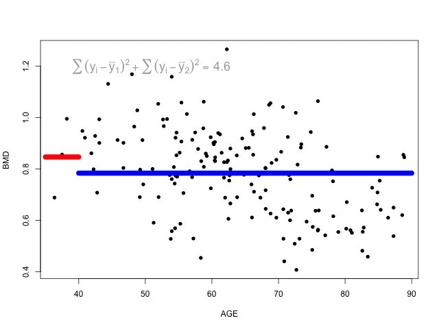 ## rpart(formula = bmd ~ age, data = bmd.data, method = "anova",