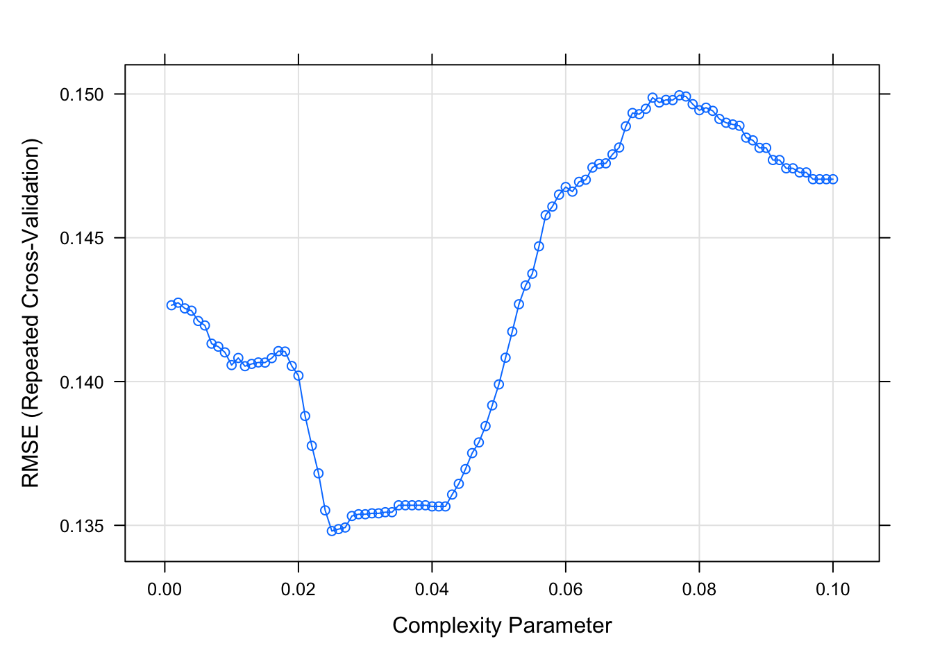 tuneGrid=expand.grid(cp=seq(.001, .1, .001)))## Warning in train.default(x, y, weights = w, ...): The metric "Accuracy" was not