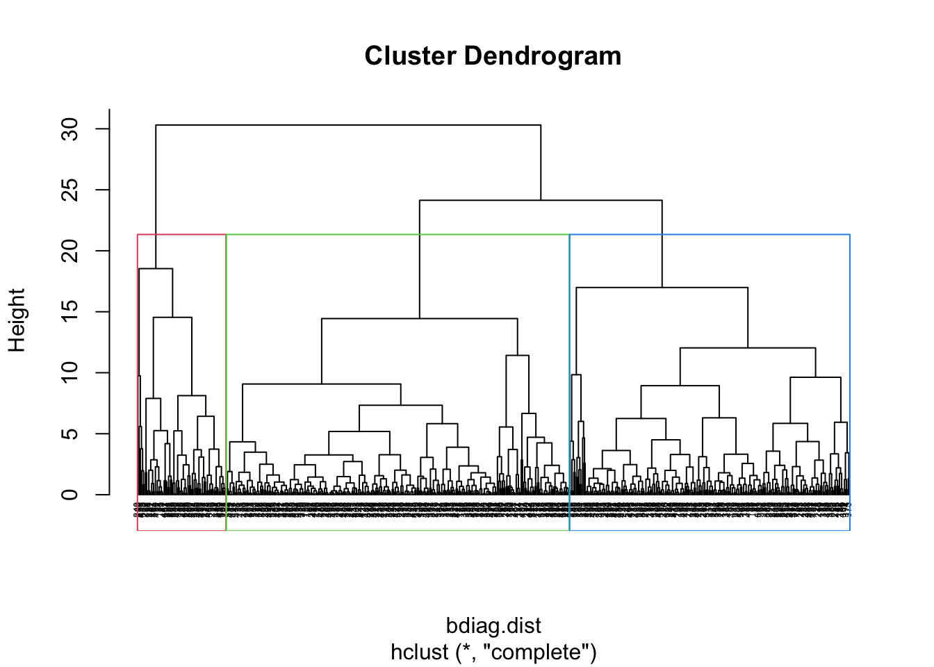 rect.hclust(bdiag.ddgram, k = 3, border = 2:5)