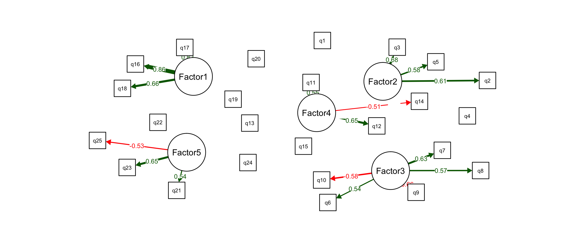 suppressWarnings(semPaths(final.factors, what="est", residuals=FALSE, cut=0.5,