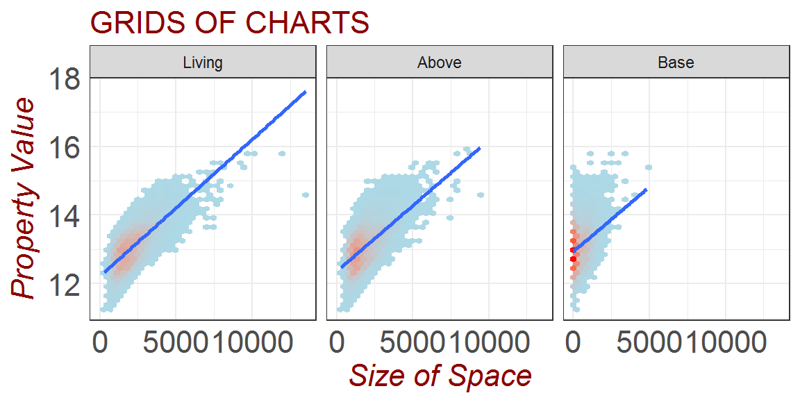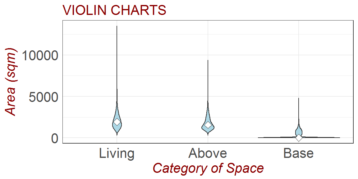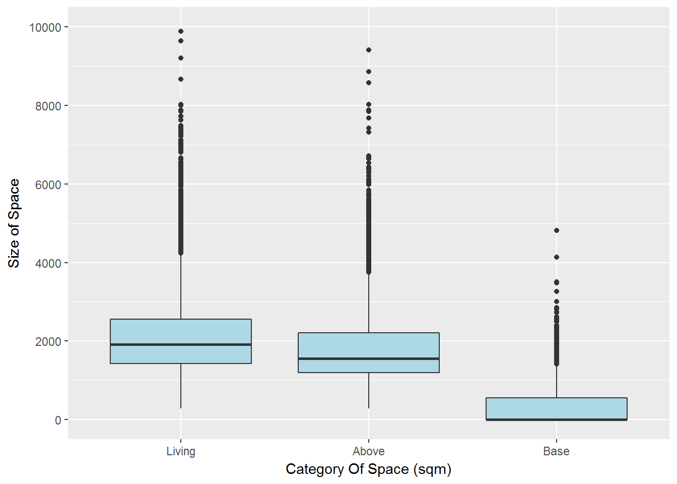 labs(x="Category Of Space (sqm)",y="Size of Space")Additionally, using the + sign we add scale and guide commands: