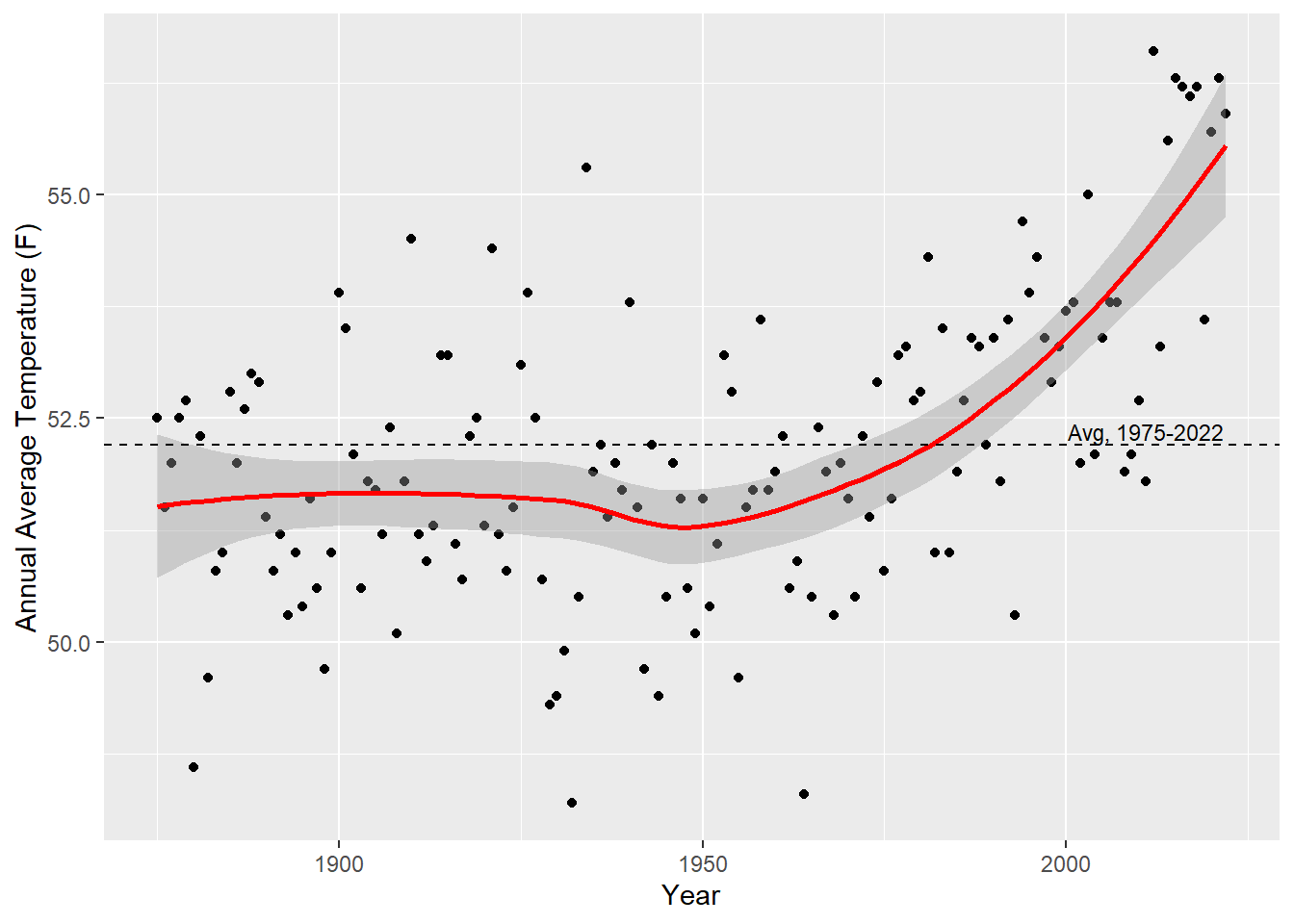 | Year | Annual Average Temperature (F) |