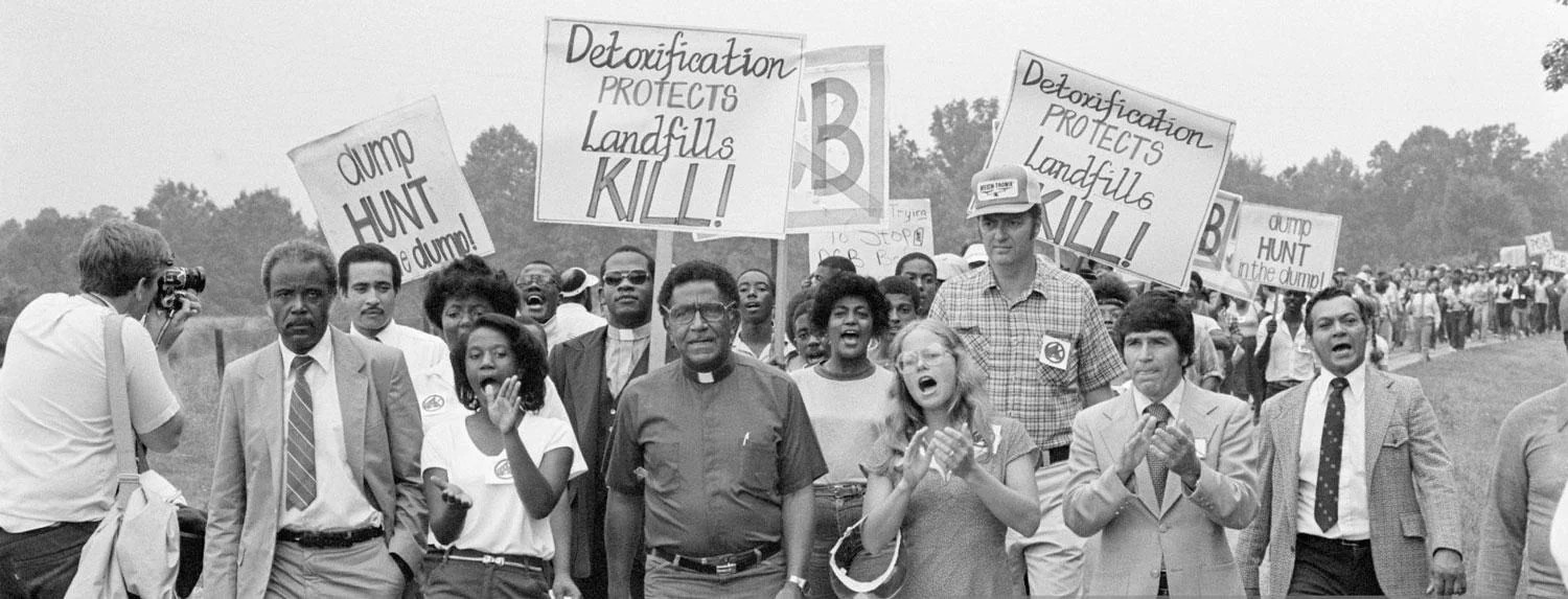 “the initial environmental justice spark sprang from a Warren County, North Carolina, protest. In 1982, a small, predominately African-American community was designated to host a hazardous waste landfill. This landfill would accept PCB-contaminated soil that resulted from illegal dumping of toxic waste along roadways. After removing the contaminated soil, the state of North Carolina considered a number of potential sites to host the landfill, but ultimately settled on this small African-American community.” (Source)