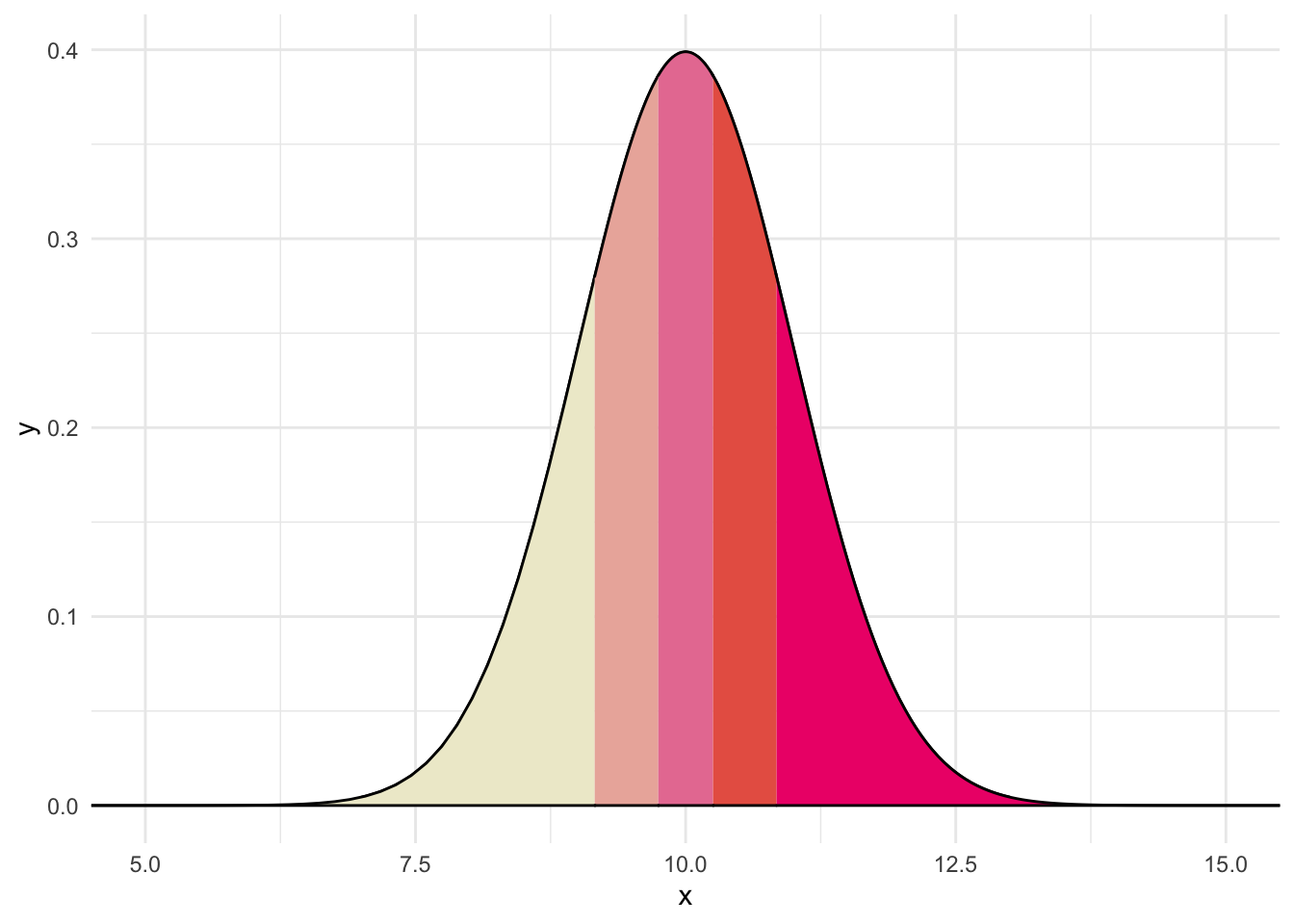We could order these variables as: 8.82, 9.8, 9.86, 9.92, 10.77. Under a normal distribution, we would create five quantiles.