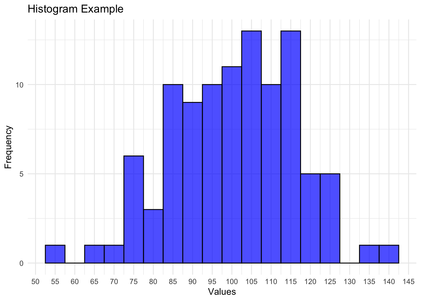 Additionally, the overall shape of the histogram indicates the data’s central tendency, spread, and symmetry. Peaks and valleys highlight regions of higher or lower frequency, and the tails provide insights into outliers or extreme values.