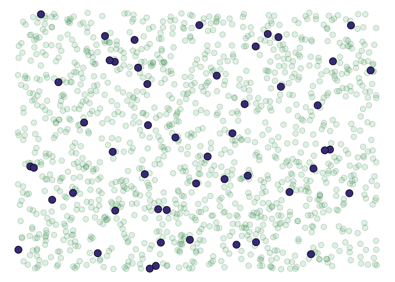 For example, imagine we are interested in understanding the link between depression and anxiety in Grenfell Students (our population). Hypothetically, the following figure represents all Grenfell Students.