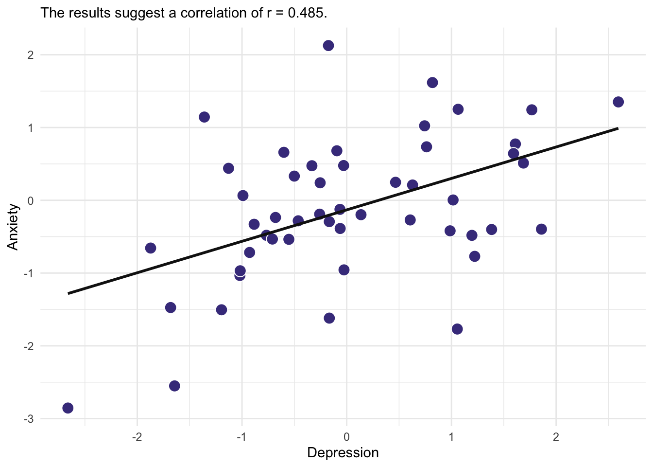 We would conduct analysis with the sample. The following figure visualized the link between depression and anxiety in our sample: