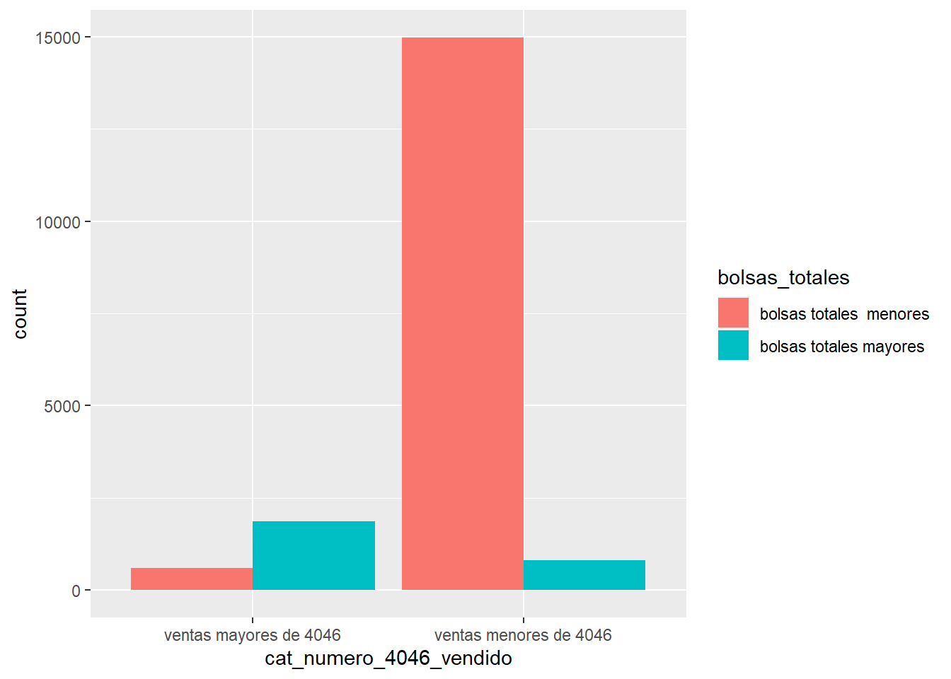 ventas menores de 4046 | 14970 | 815 | 15785 |