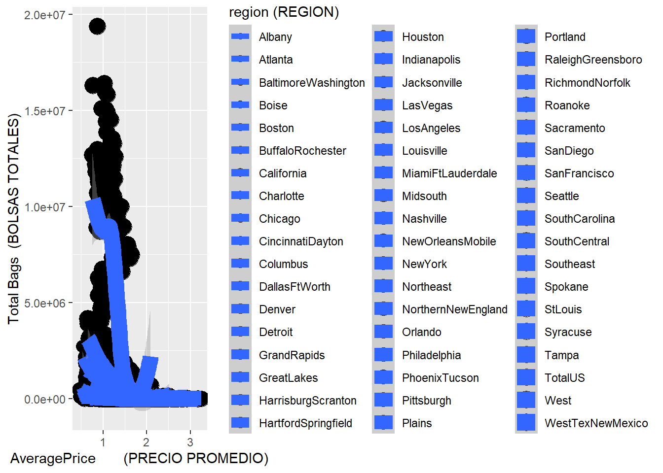 p <- ggplot(Caso_Aguacate_xls, aes(x=`AveragePrice (PRECIO PROMEDIO)`,