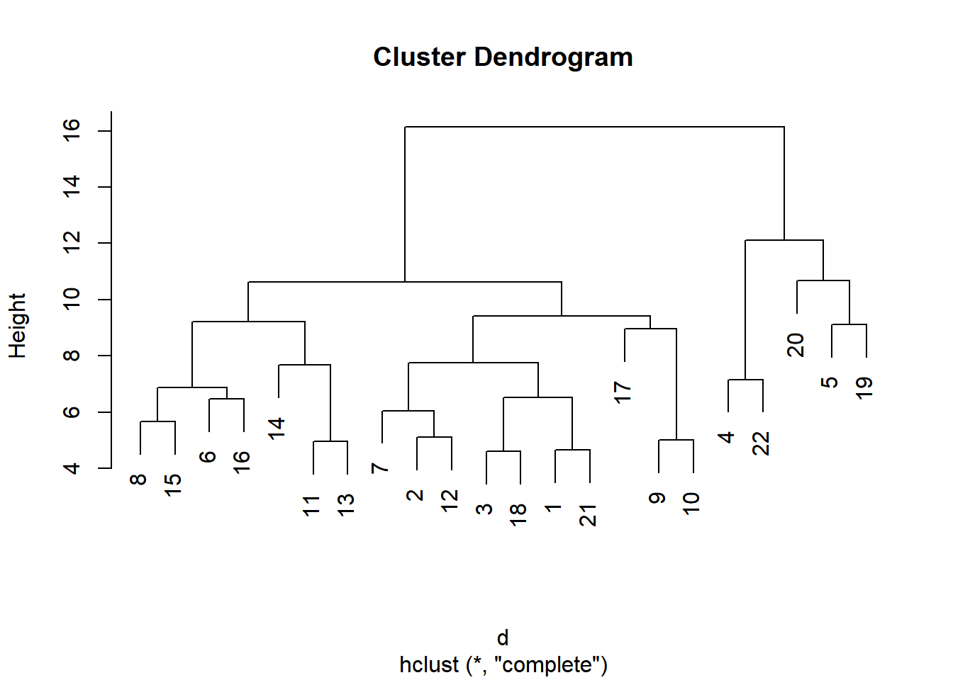 seg.hclust <- hclust(d) # apply hirarchical clustering