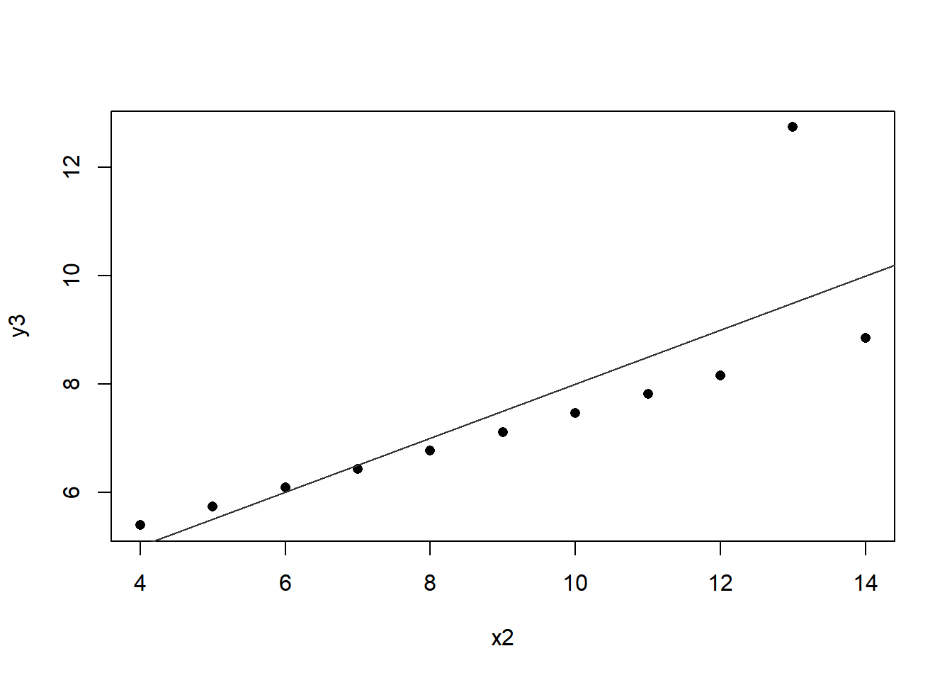 abline(lm(y3 ~ x3, anscombe), col = "grey20")