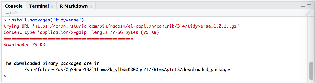 library(tidyverse)If you run this code and get the error message “there is no package called ‘tidyverse’”, you need to first install it, then run library() again.