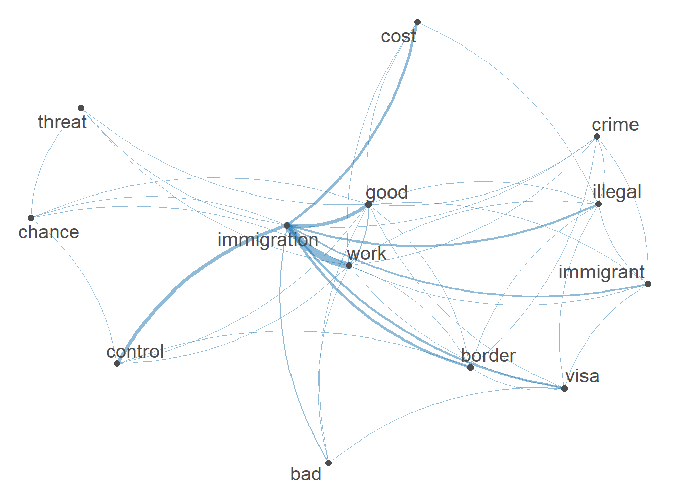 Anhand der Wordcloud können wir zumindest einige Dinge über unsere Texte erfahren - nämlich, dass diese englischsprachig sind und sich um britische Politik und/oder Immigration drehen.