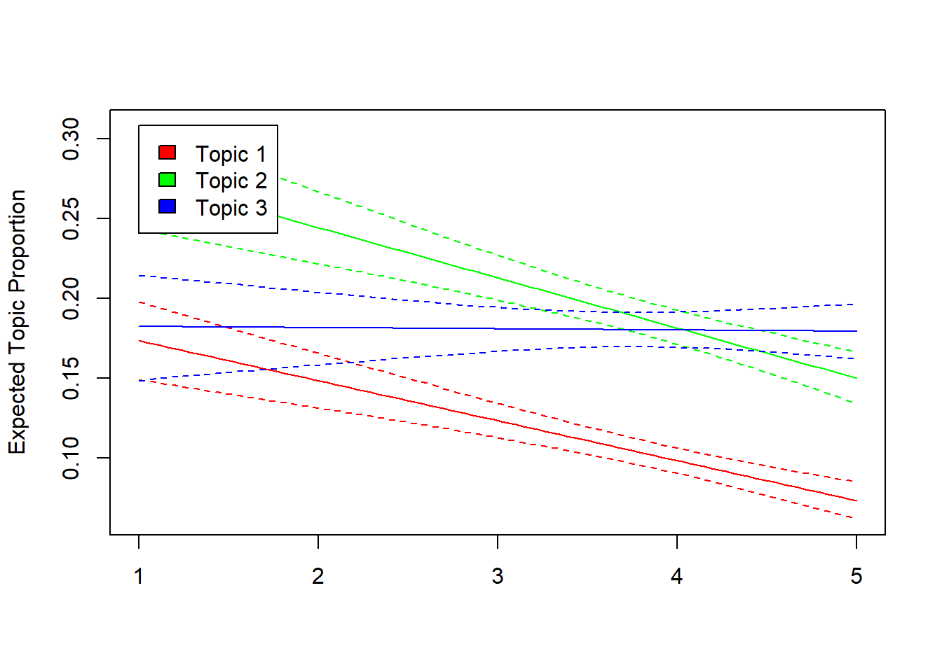 - Roberts, M. E., Stewart, B. M., Tingley, D., Lucas, C., Leder-Luis, J., Gadarian, S. K., Albertson, B., & Rand, D. G. (2014). Structural Topic Models for Open-Ended Survey Responses: STRUCTURAL TOPIC MODELS FOR SURVEY RESPONSES. American Journal of Political Science, 58(4), 1064–1082. Link