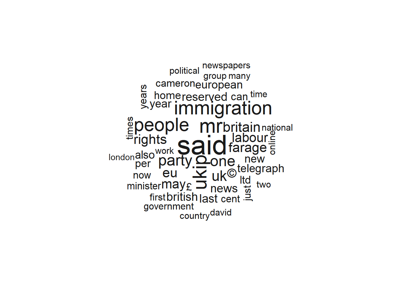 From the wordcloud, we can at least learn some things about our texts - namely that they are in English and deal with British politics and/or immigration.