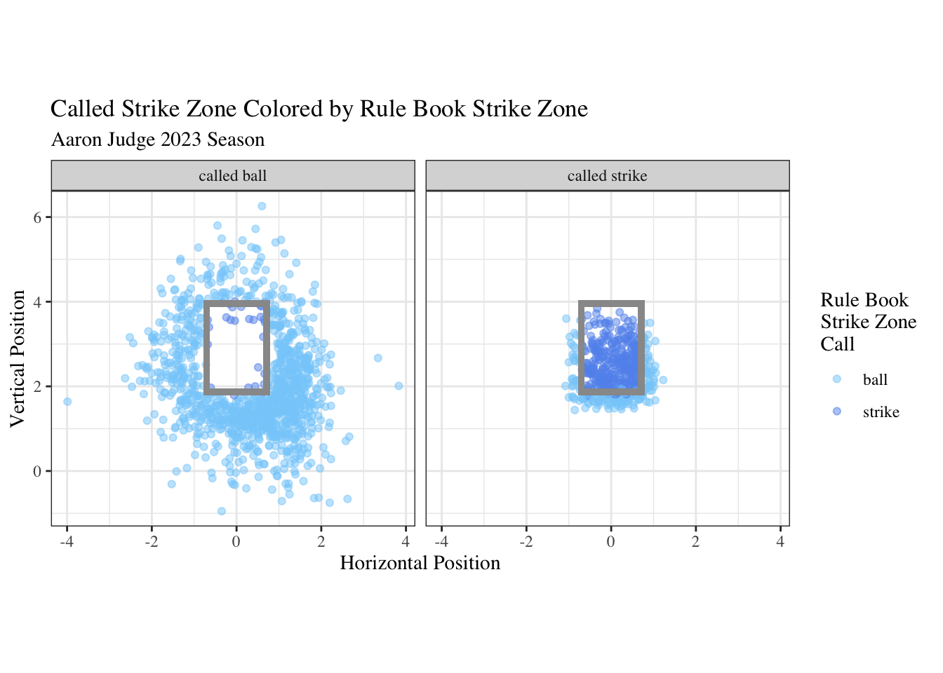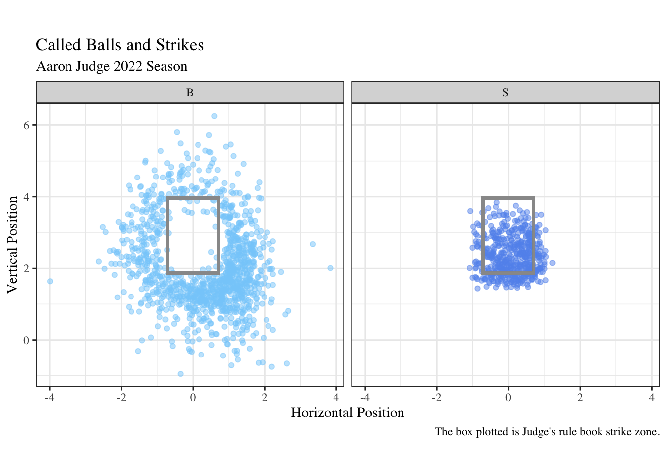 caption = "The box plotted is Judge's rule book strike zone.") +