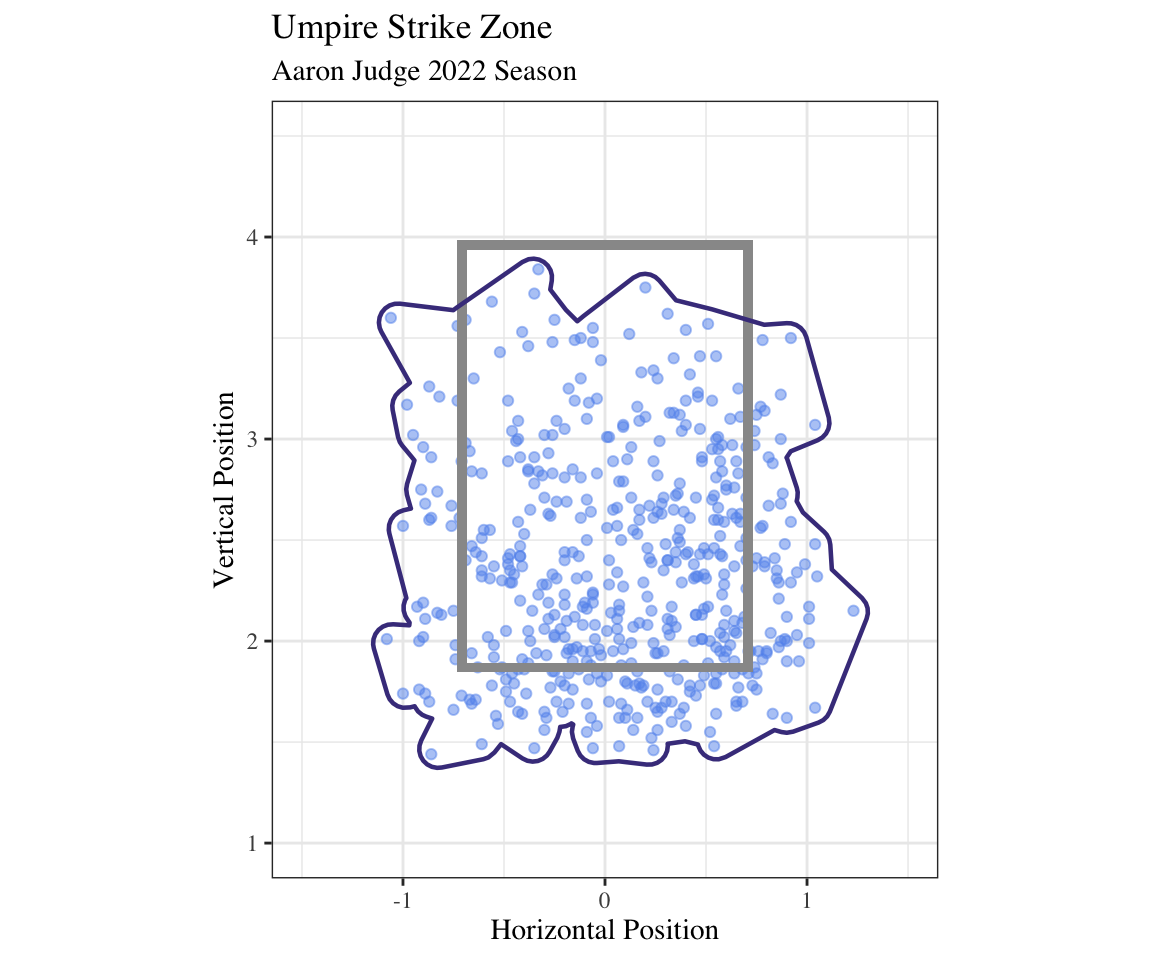 Here is graph of Aaron Judge’s strike zone for pitches that were called a strike or ball by the umpire.