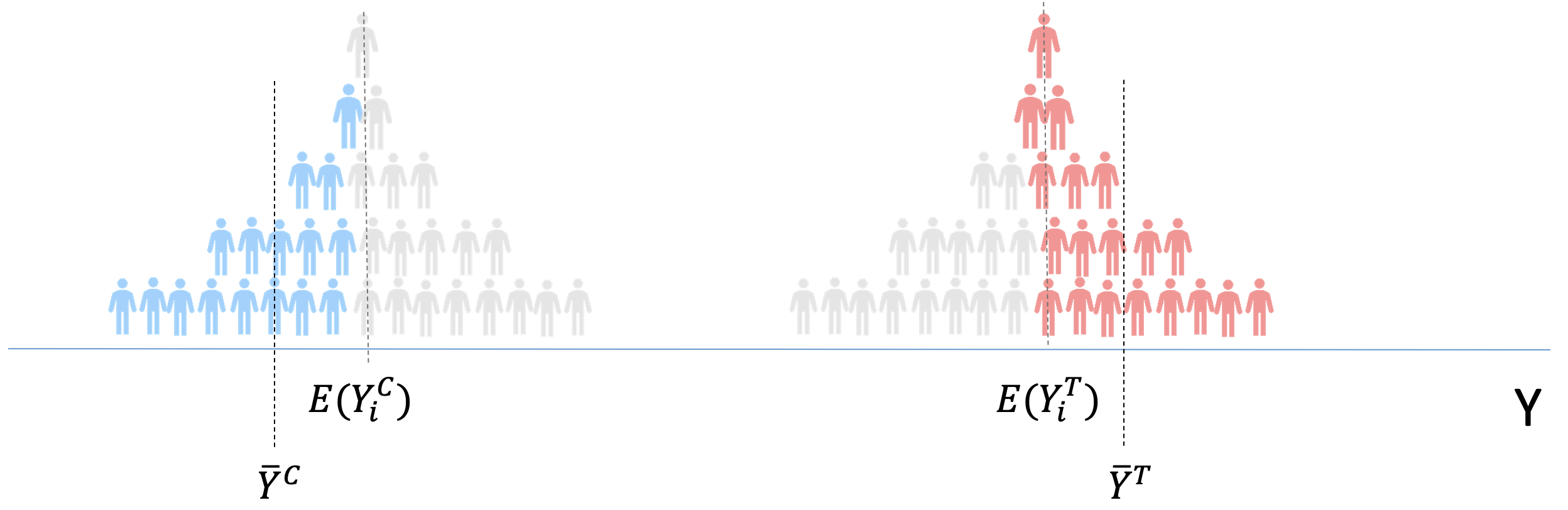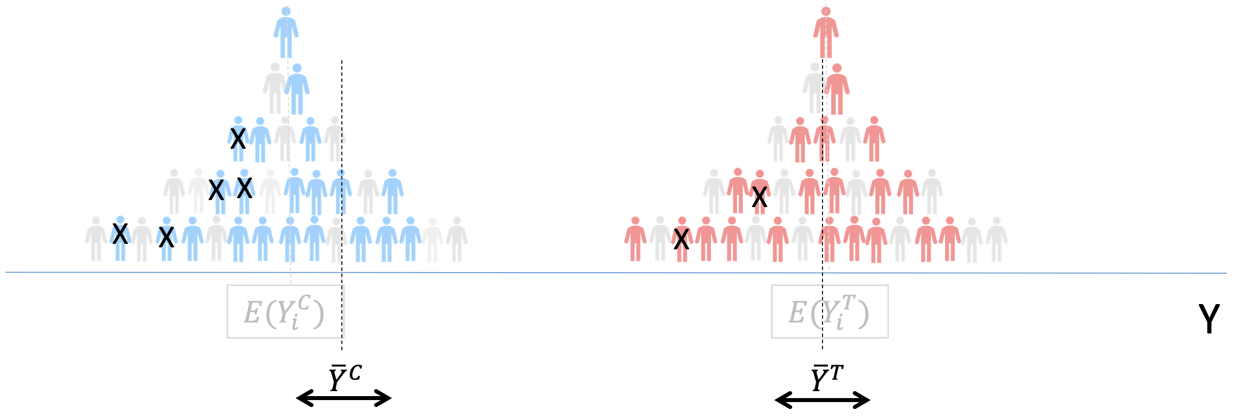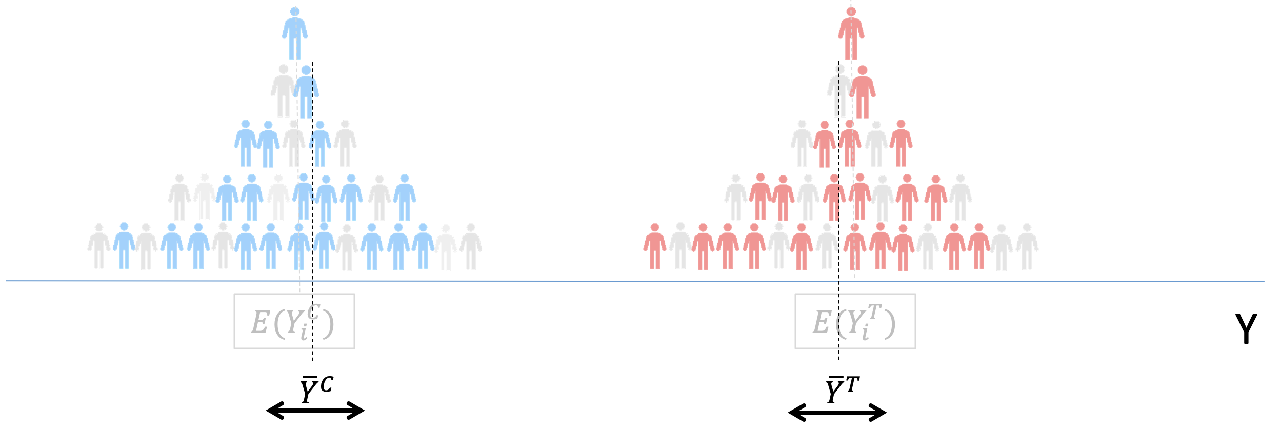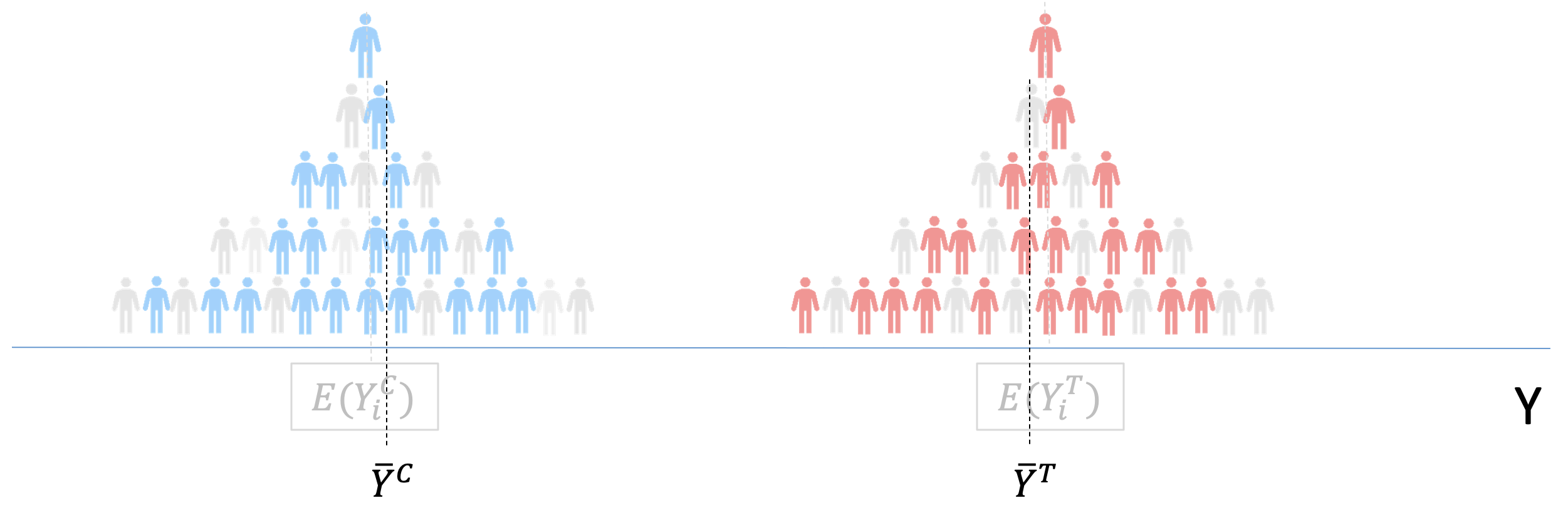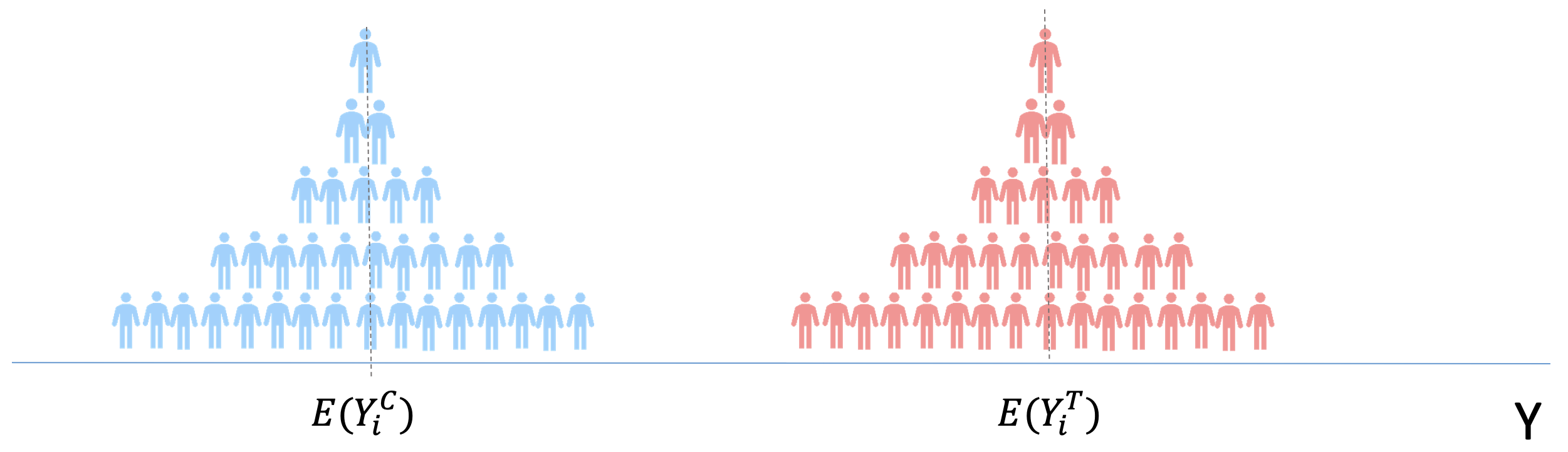 Average Treatment Effects: \(ATE=E[Y_i^T]-E[Y_i^C]\)