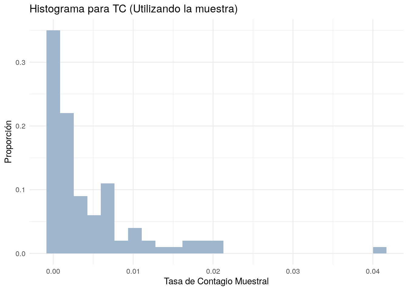 title = "Histograma para TM (Utilizando la muestra)") +