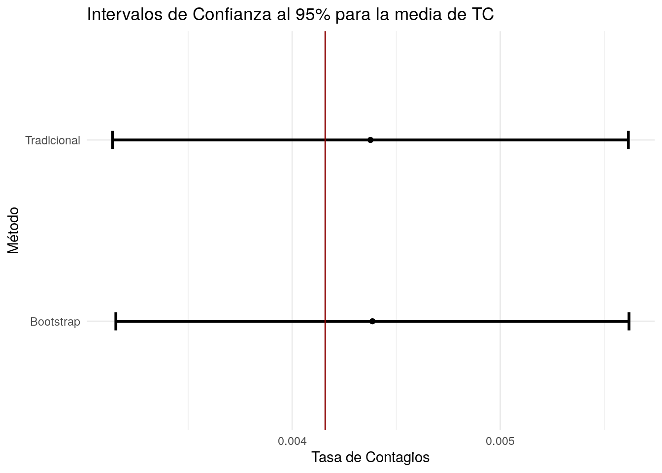 title = "Intervalos de Confianza al 95% para la media de TC") +